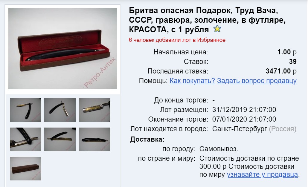 Что-то раньше я не особо собирал аукционы, поэтому пока их не много и выводы делать рано. Вот наберется штук 100 по советским бритвам, и сотня по иностранным, тогда и обработаем статистику.