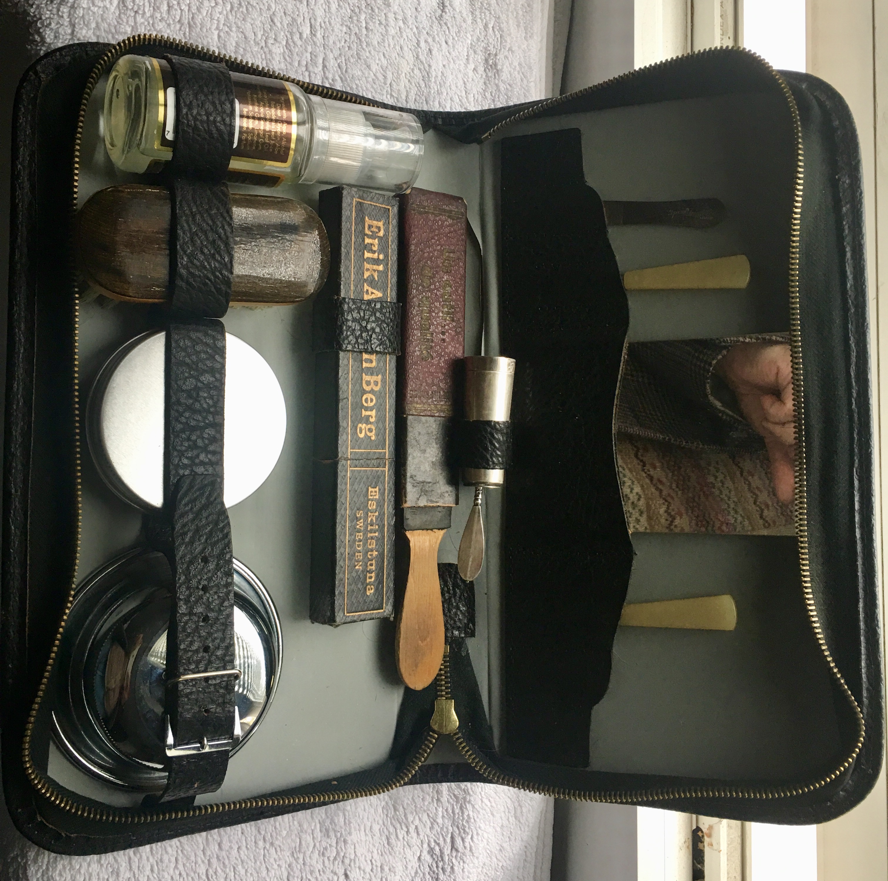 Дорожные наборы для бритьяЗдравствуйте, вот такой футляр для ремня и чемоданчик для перевозки или хранения принадлежностей хочу показать