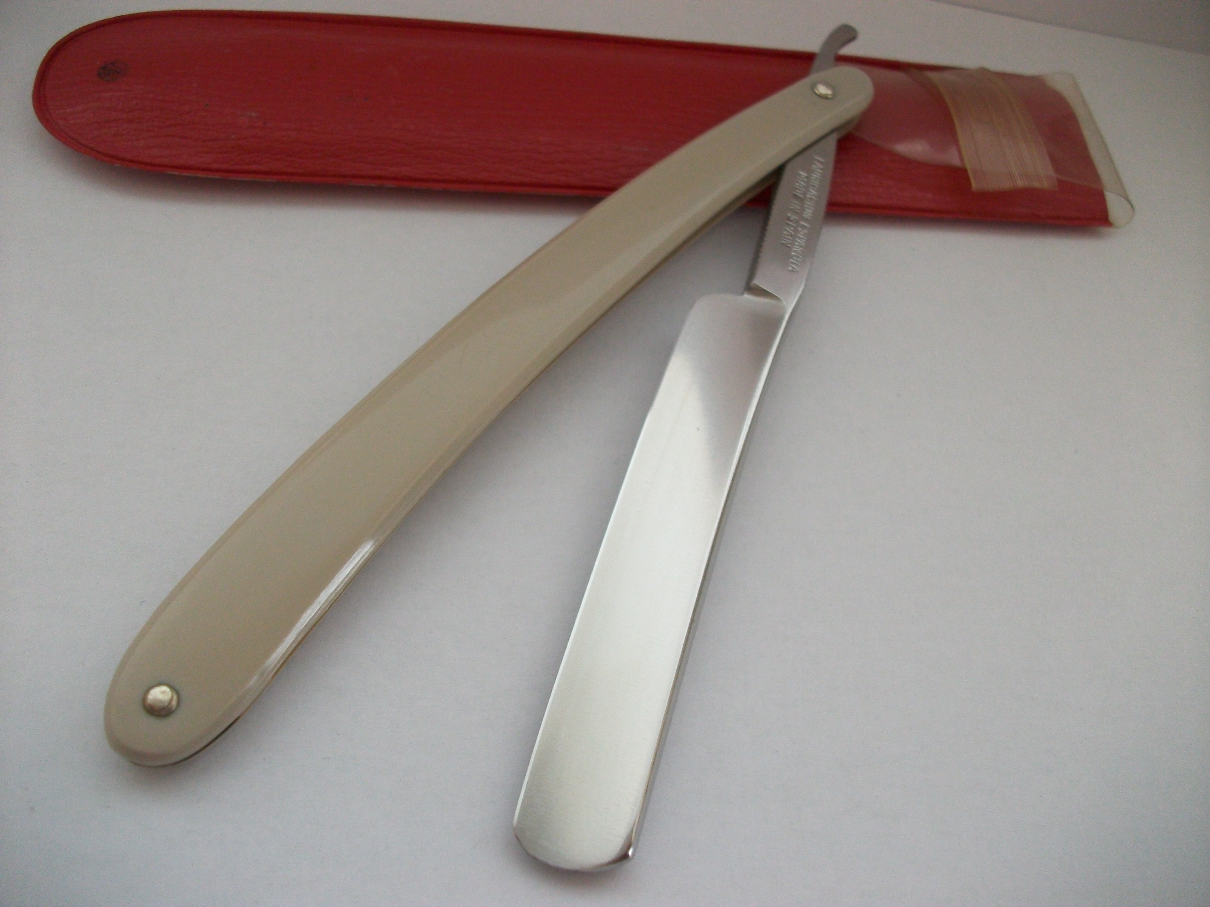 Абсолютное новье, лично снял пломбу при открытии коробочки. Узкая бритва из углеродистой стали, ширина полотна 11мм, ручка пластик. По желанию может быть заточена - включено в стоимость. Продано Spoiler Show