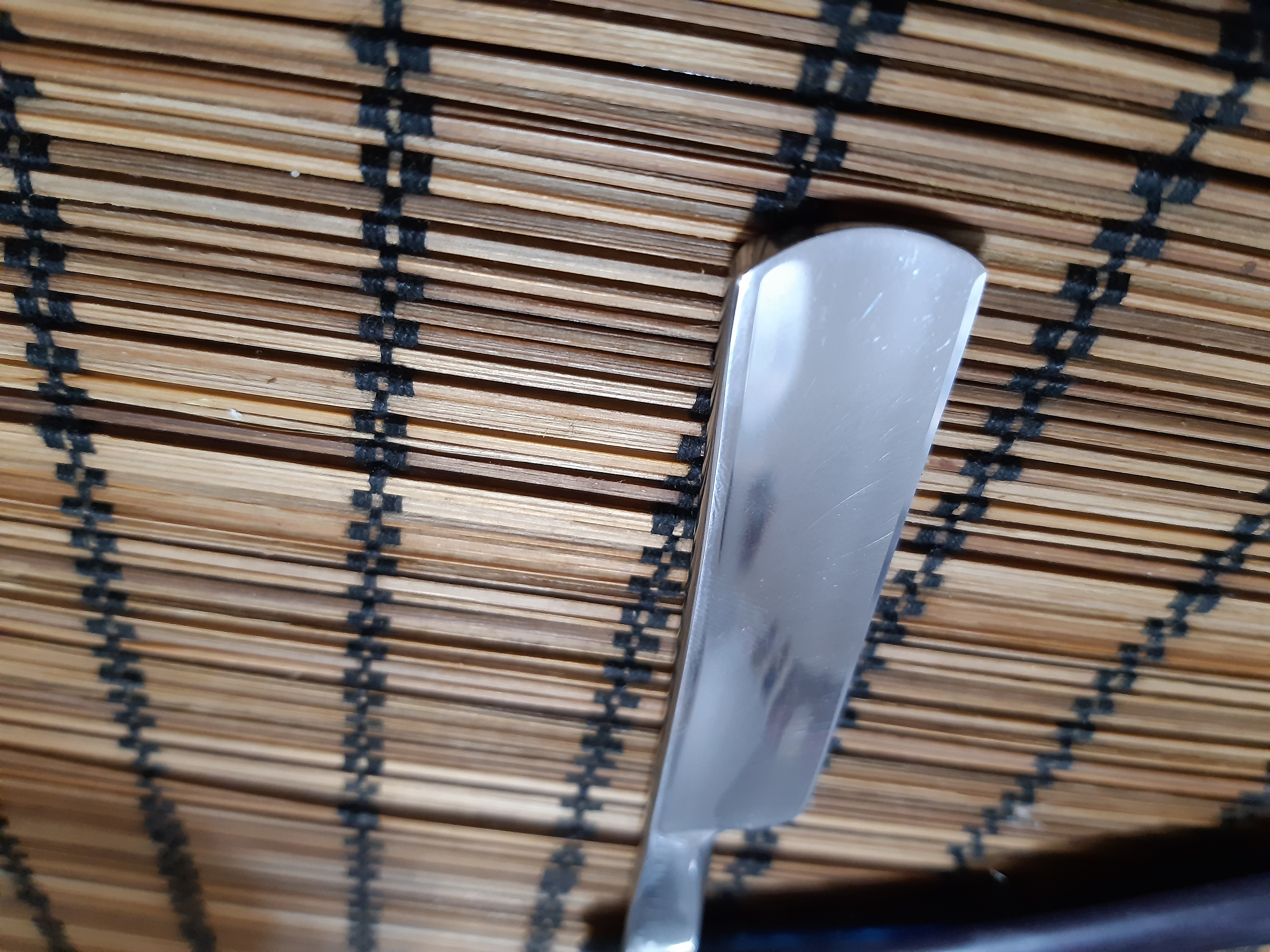 Бритва до... и после...Maga35535, я бы до шлифовки сначала занялся бы исправлением геометрии бритвы на грубом камне, а после уже шлифовал. а так то с почином, хорошее начало