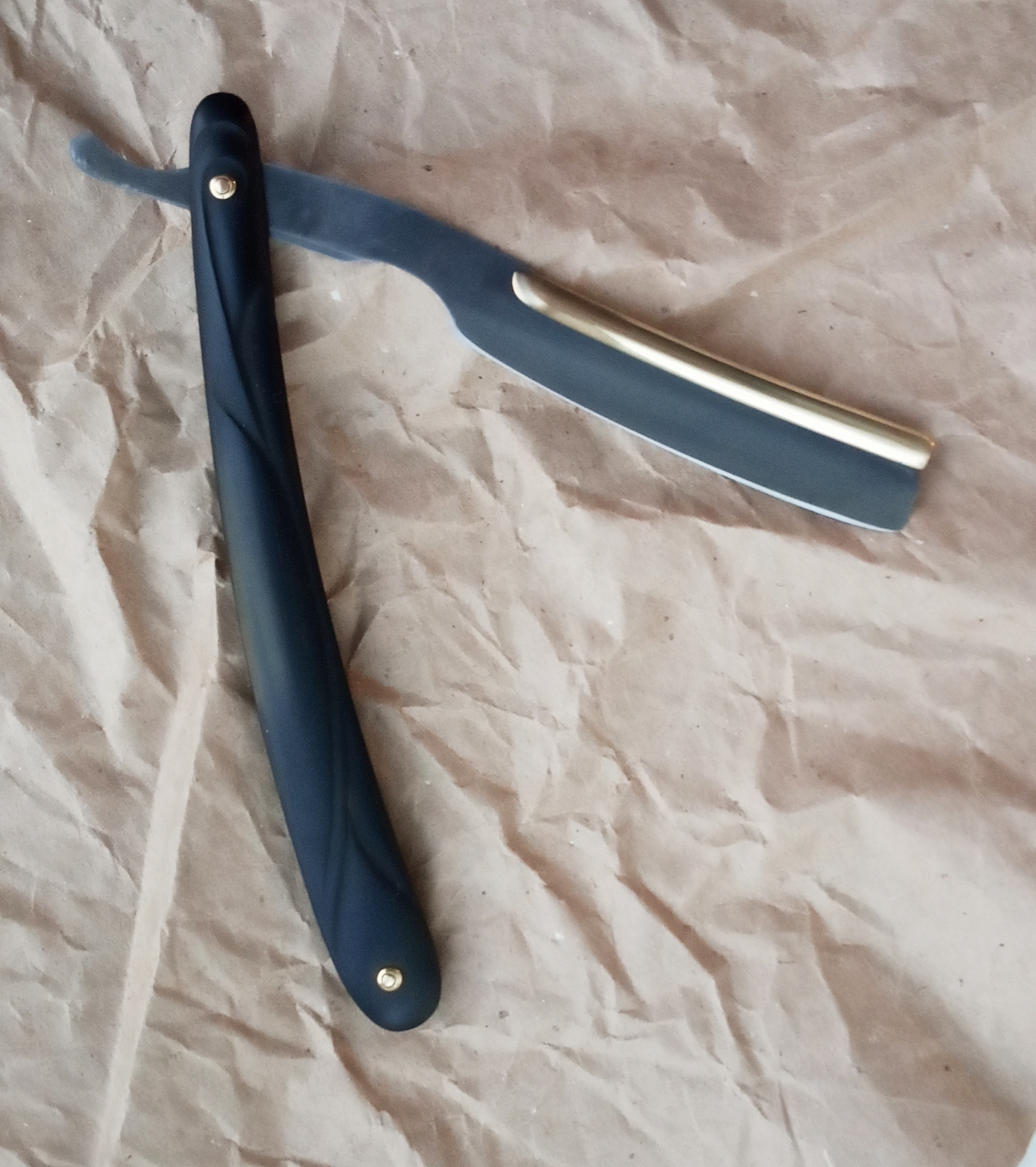 Бритва до... и после...Досталась мне тут вместе с другой бритвой довоенная Вача, ржавая и уточенная. Восстанавливать сначала не думал, хотел выкинуть. Поэтому и фото «До» не сделал. Потом ради интереса и уважения к возрасту решил - сделаю что смогу. Произвёл полный регринд, удалось сохранить основную часть клейма. Полностью каверны удалить не получилось, ржа у носика была слишком глубокая. Но кромка чистая. Ширина полотна 13 мм., кромочка шириной с волосок. Ручка, клинышек и шайбы родные. Заточил, побрил недельную щетину. Лёгкая и манёвренная. Бреет мягко, будто гладит. В бритье напоминает шведов.