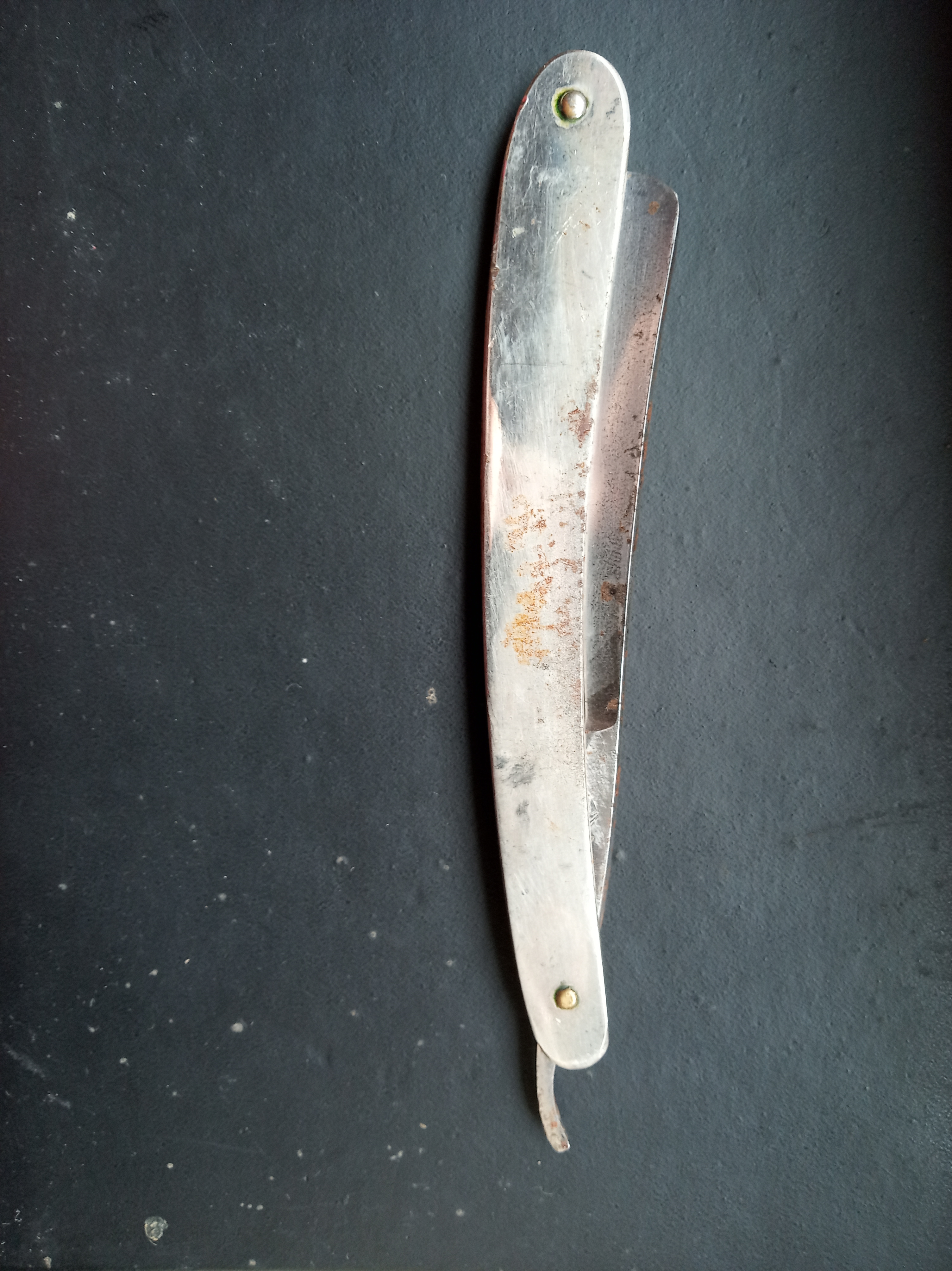 Бритва Росинструмент. г.Павлов.Интересно, ручку меняли, или всё родное? Хром с пина облез, вероятно подбивали. Лезвие к ручке подогнано правильно.