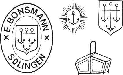 E.Bonsman Ohligs-SolingenErnst Bonsmann, Dreiankerwerk, Solingen-Ohligs, находилась на Kottendorfersstrasse, 3 в 1939 году, на Kölnerstrasse в 1970 году и на Friedrichstrasse, 5 в 1998 году.