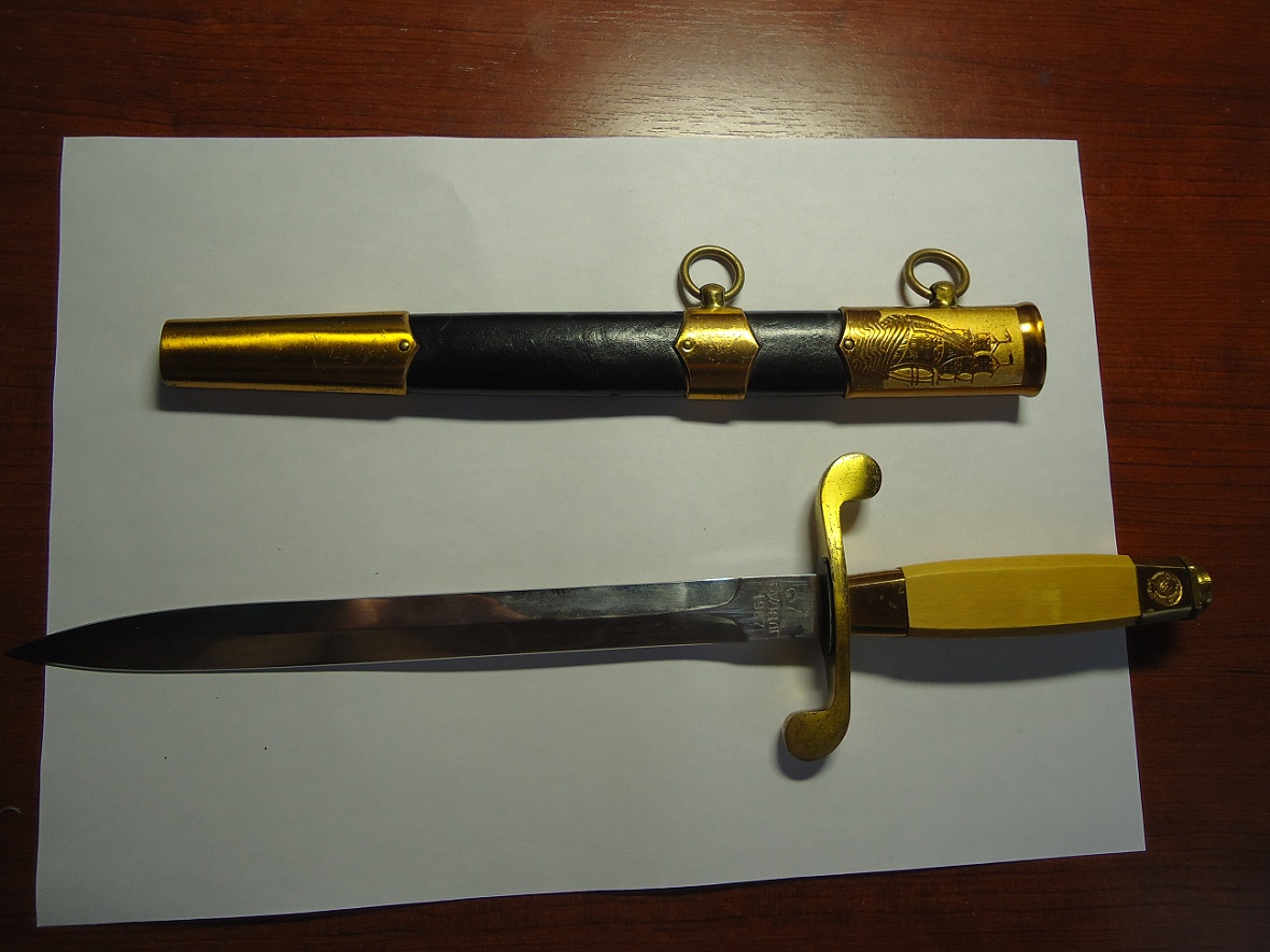 Стандартный Glock Survival Knife 81. Почти точная копия стандартного FM 78. Ножны пластиковые, сталь оружейная, подробности можно найти на http://www.glock.com/english/index_outdoor.htm Добавлено спустя 7 минут 43 секунды: Кортик моего отца! В нём тоже ничего особенного нет (таких наверняка тысячи), но для меня он один, как память о годах, которые мой отец отдал Флоту России.