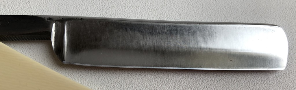 Бритва в прекрасном состоянии. Разобрал, немного освежил металл и снова собрал, сохранив родные пины.Следов активного пользования не заметил. Сталь и кромка чистые, без видимых дефектов.Идеальная геометрия полотна.