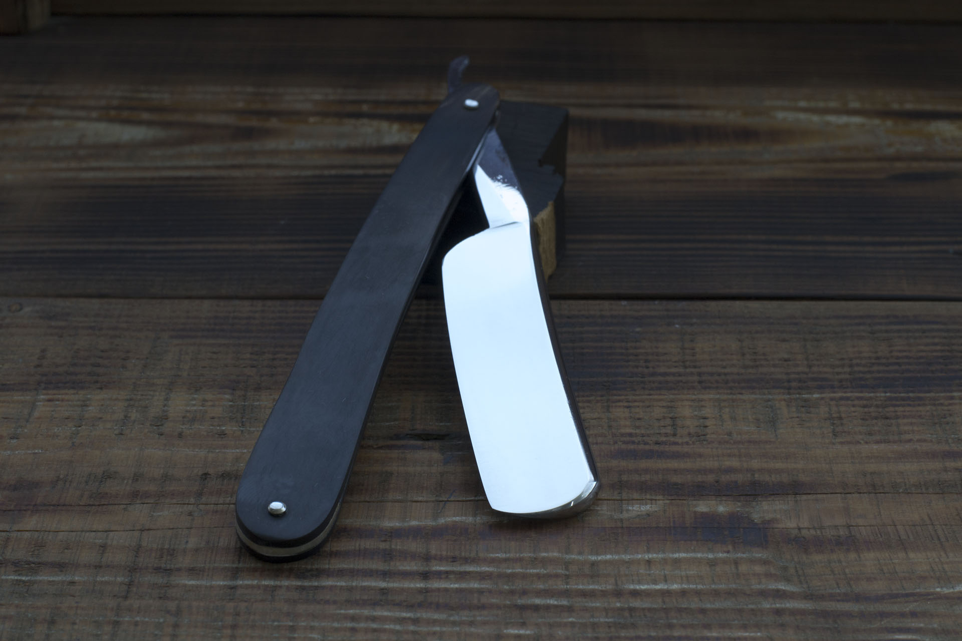 Узкий английский клин без клейма производителя. На эрле стоит метка Fine India Steel, что в целом дает представление о стали как о качественной литой углеродке, произведенной в 30-40-х годах 19 века. Бритва имеет тонкую и равномерную режущую кромку, что свидетельствует о хорошей гометрии полотна. Рукоять изготовлена из дерева и является интересным образчиком народного творчества в области ремонта и модификации бритв. Порода дерева напоминает падук или что то похожее, из уважения к неизвестному мастеру 19 века, рукоять немного освежил, пропитал даниш ойлом и поставил обратно. Ширина полотна 15.5 мм. Бритва идеальна для окантовки, но при определенной практике может отлично справляться с любой щетиной. Режущие характеристики узких клинов ничем не хуже аналогочного параметра широких, длина режущей кромки идентична и при правильной постановке угла и техники бритья, узкий клин легко станет прекрасным ежедневным решением. Бритва заточена и готова к бритью. Продано Fine India Show