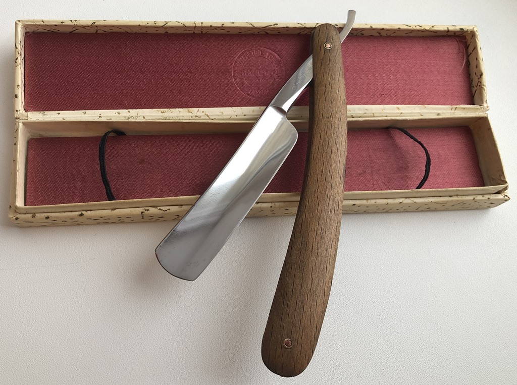 Бритва в очень хорошем состоянии , для своих лет.Мной не разбиралась, а если и разбиралась когда то, то очень давно, так как таких пинов сейчас не делают.Не уточена и имеет чуть заметные следы пользования.Сталь и кромка чистые, без дефектов.Родная роговая ручка также , в очень хорошем состоянии. Бритва миниатюрная, хотя достаточно увесистая, за счет своей формы лезвия. Подойдет не только для бритья, но и для коррекции усов и бороды.Можно порекомендовать опытным пользователям в качестве ещё одной в коллекцию, тем более вариант недорогой, но приятный во всех отношениях. Заточена и готова к бритью.
