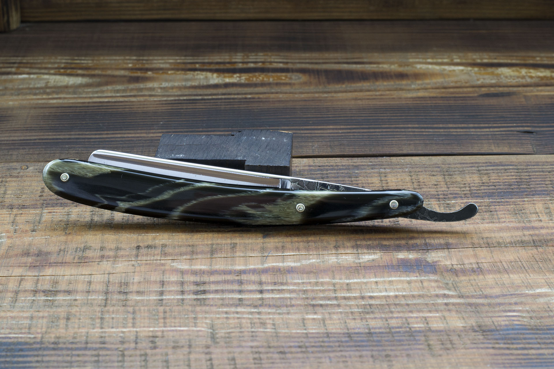 Опасная бритва от производителя, начавшего свою деятельность в Шеффилде, в первой половине 19 века и имевшего специализацию именно на бритвах. Это довольно важный и интересный аспект, поскольку многие фабрики того времени, выпускавшие опасные бритвы, начинали как ножевые производства или предприятия по производству столовых приборов. Бритва изготовлена в 50-е года 19 века, имеет ширину в 23 мм(7/8+), на полотно нанесено травление, дублирующее информацию клейма эрля, а так же гласящее что бритва изготовлена из "Улучшенной Эластичной Стали" Бритва точилась довольно мало и аккуратно, об этом свидетельствует целостность травления, оно практически не тронуто заточными камнями по верхней границе, кроме того тонкая и равномерная фаска режщей кромки свидетельствует об отличной геометрии. Небольшим недостатком являются два очага питтинговой коррозии в верхней части травления, но в целом, очаги локальные и не представляют угрозы для потребительских свойств бритвы и в некоторой степени даже подчеркивают почтенный возраст изделия. Бритва снабжена новой роговой рукоятью из рога африканского буйвола, рог медового цвета с вкраплениями оранжевого и молочного пигмента. Довольно редкое сочетание цветов. Очень красивый материал. Из бережливости и тяге к аутентичности сохранил родные шеффилдские латунные шайбы, которые стояли на бритве изначально. Отдельно хочется сказать о качестве стали, на мой взгляд оно действительно выдающееся. Бритва прекрасно заточилась и уверенно проходит тест на рез волоса.. Отличный рабочий клин с редким коллекционным травлением. Заточена и готова к бритью. Продано F.R. Show [/b]