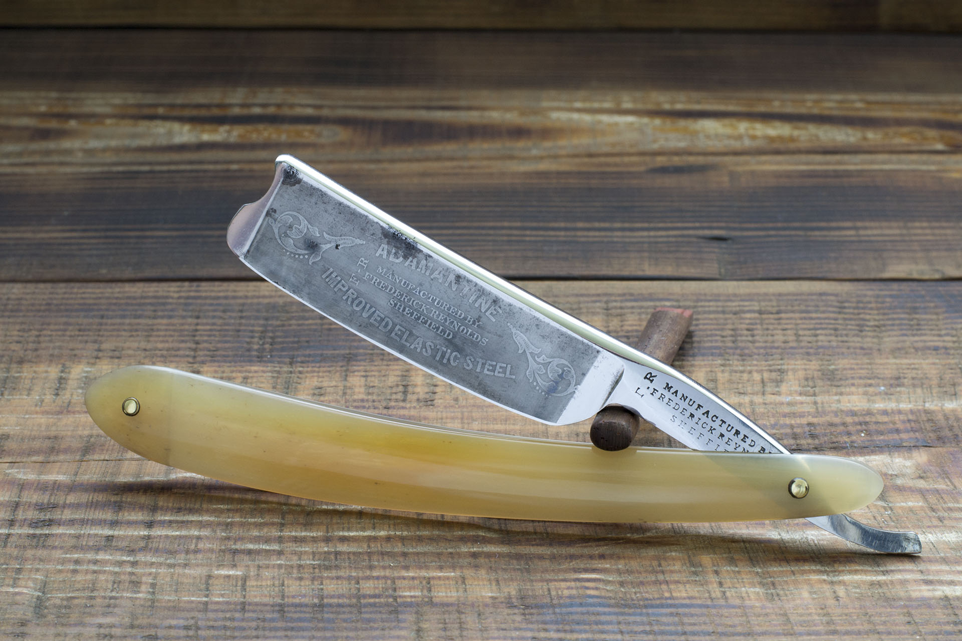 Судя по мнению общественности бритвы Lindner стоит отнести к английскому производству. Бритва имеет роговую рукоять, ширина полотна 19 мм. (6/8), судя по форме и надписи - Refined steel (Рафинированная сталь), бритву можно отнести к 30-40- м годам 19 века. Стоит отметить агрессивную форму клинка и наличие выраженного парикмахерского выреза, бритва показалась мне очень удобной для удержания из за широкого эрля и длинного хвостовика. Полотно средней ширины позволяет с комфортом использовать бритву для повседневного бритья или при окантовке. Геметрия полотна на отлично - фаска режущей комки тонкая и равномерная.. Бритва заточена и готова к бритью. Цена 9800 рублей Spoiler Show