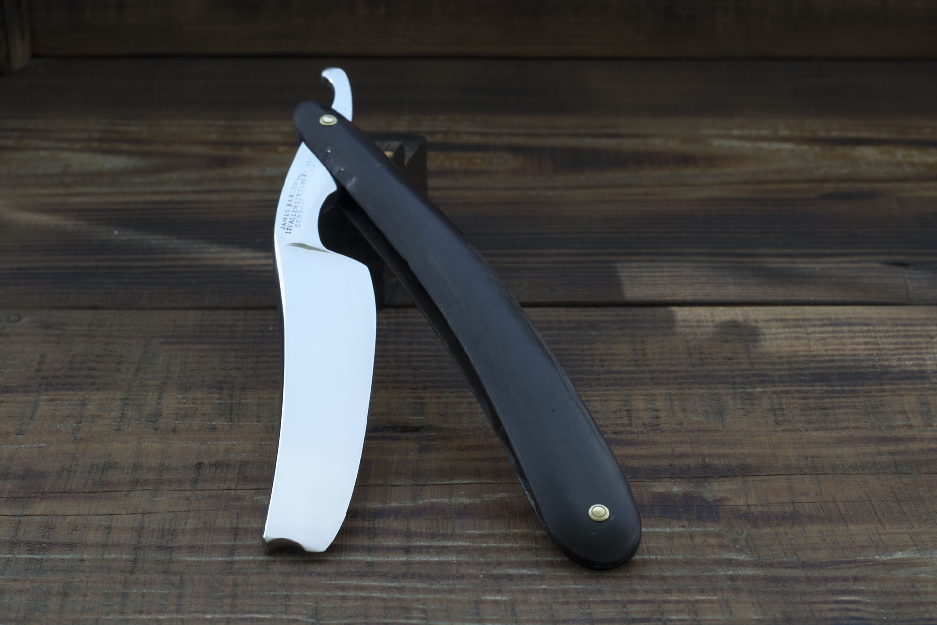 Довольно примечательный экземпляр старой шеффилдской бритвы, изготовленной James Barlow & Sons в 1825 - 1850, именно в этот промежуток времени компания базировалась на Allen Street в Шеффилде, о чем свидетельствует клеймо на эрле. В Данном случае это очень удачное обстоятельство, благодаря которому с довольно большой точностью удалось определить годы производства бритвы. Бритва имеет редкую форму и расширяется от пяточки к носику, такое встречается нечасто и многие любители опасных бритв полагают что это дефект формы, однако я твердо убежден что это дизайнерское решение, задуманное производителем. Иногда такую форму полотен можно увидеть на бритвах Joseph Elliot, Wade&Butcher и довольно часто на Marshes & Shepherd, хотя повторюсь, это является нечастым решением. И теперь я впервые вижу подобную форму полотна от Джеймса Барлоу. Максимальная ширина у пяточки составляет 20 мм и 16 мм у носика. Бритва выполнена из качественной тигельной углеродистой стали, фаска режущей кромки тонкая и равномерная. Бритва снабжена роговой рукоятью, заточена и готова к бритью. Продано Spoiler Show
