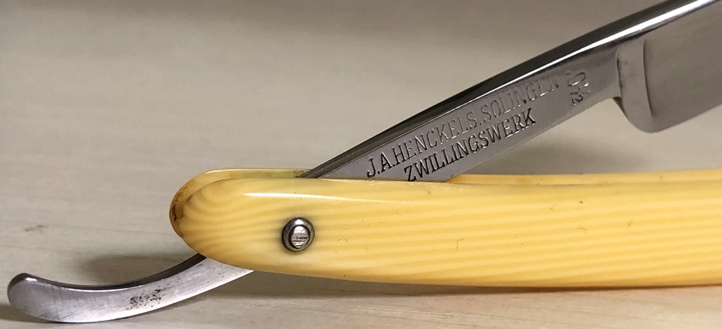 Все 4 бритвы разных моделей, в состоянии идеальное или близкое к идеальному... Непользованный J.A.HENCKELS.SOLINGEN ZWILLINGSWERK модель 72 Ширина полотна-20 мм Толщина обушка-5.8 мм Полная вогнутость. Сталь условно нержавеющая-FRIODUR INOX Бритва не разбиралась и не ремонтировалась, не имеет следов пользования.Заводская шлифовка и полировка. Полотно без царапин, следов окисления и других дефектов.(немного сошла синяя краска с букв на полотне, но это не принципиально).Идеальная геометрия клинка:кромочка равномерна по всей длине и еле заметна.Заточена и готова к бритью. Цена-9500 р с доставкой. ПРОДАН Spoiler Show