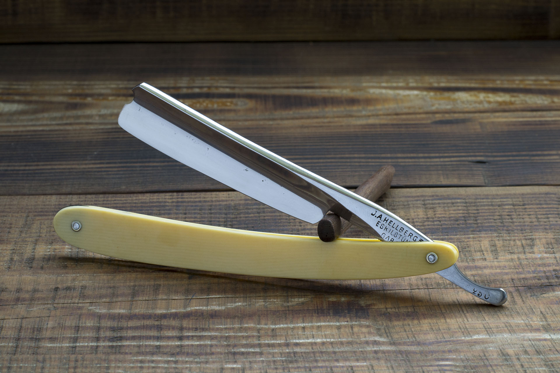 Вариант первый J. A. Hellberg. 250. Бритва от известного шведского производителя - Johan Alfred Hellberg. Хеллберг был из числа мастеров, открывшихся в конце 19 века, в период когда европейское производство переживало спад, многие фабрики закрывались и переживали не самые лучшие времена. Однако это не помешало Хеллбергу добиться внушительных результатов в своем деле, начав свое производство с бритв и позднее расширив линейку охотничьими ножами и кинжалами. Высокое качество продукции позволило фабрике быстро завоевать известность а так же стать лауреатами нескольких престижным промышленных выставок в Швеции и за ее пределами. Данная бритва, с клеймом 250 на кончике эрля(по всей видимости номер модели), имеет полную вогнутость, рукоять из целлулоида и ширину полотна в 18.4 мм. На полотне есть несколько каверн, которые просто нет смысла убирать, режущая кромка и прилегающая область, к счастью не пострадали, соответственно бритвой можно пользоваться и получать массу удовольствия, режущие свойства данной бритвы, гораздо выше заявленного ценника. Отлично подойдет новичкам, так же приятна как бритва для поездок. Особенно сейчас, когда путешествия становятся особенно актуальными. Продано 250 Show