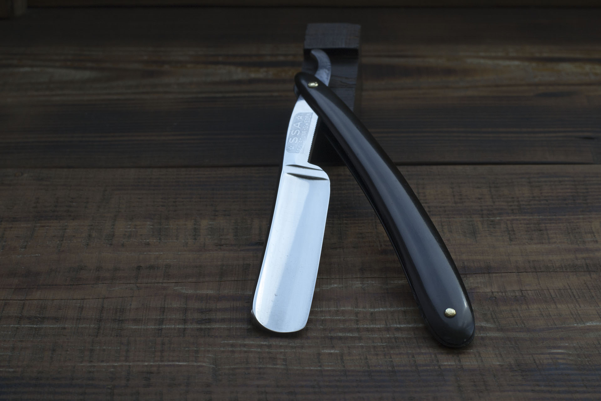 В рамках своего копания по закромам (нужно было освободить сундук под пшеницу) удалось найти вот такого представителя SSA (Svenska Stalsmides Aktich). Производство было налажно на базе бывшей фабрики Johan Enstrom в 1918 году, однако то что выпускалось Энгстремом имеет очень мало общего с бритвами SSA в плане приемственности. Это по прежнему очень хорошая сталь, высокое качество исполнения, но полностью модернизированное производство, выпускающее бритвы более современного дизайна, большинство из которых имело полную или трехчетвертную вогнутость, клейма теперь наносятся неглубоким травлением, кроме того меняются дизайн и материалы изготовления рукоятей. Интересно так же что бритвы SSA очень высоко ценятся на западе, что не скажешь о бритвах Энгстрем, оценивающихся гораздо скромнее. Данная бритва имеет ширину 18.4 мм, вогнутость 3/4, рукоять - эбонит. Почти новая бритва с незначительными следами заточки и окисления. Все что было сделано - полировка полотна, замена рукояти и заточка. Сталь без сомнения очень хороша, геометрия так же на высоком уровне. Бритва заточена и готова к бритью. Продано SSA Show