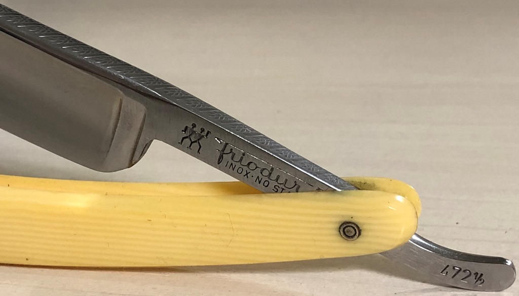 Все 4 бритвы разных моделей, в состоянии идеальное или близкое к идеальному... Непользованный J.A.HENCKELS.SOLINGEN ZWILLINGSWERK модель 72 Ширина полотна-20 мм Толщина обушка-5.8 мм Полная вогнутость. Сталь условно нержавеющая-FRIODUR INOX Бритва не разбиралась и не ремонтировалась, не имеет следов пользования.Заводская шлифовка и полировка. Полотно без царапин, следов окисления и других дефектов.(немного сошла синяя краска с букв на полотне, но это не принципиально).Идеальная геометрия клинка:кромочка равномерна по всей длине и еле заметна.Заточена и готова к бритью. Цена-9500 р с доставкой. ПРОДАН Spoiler Show