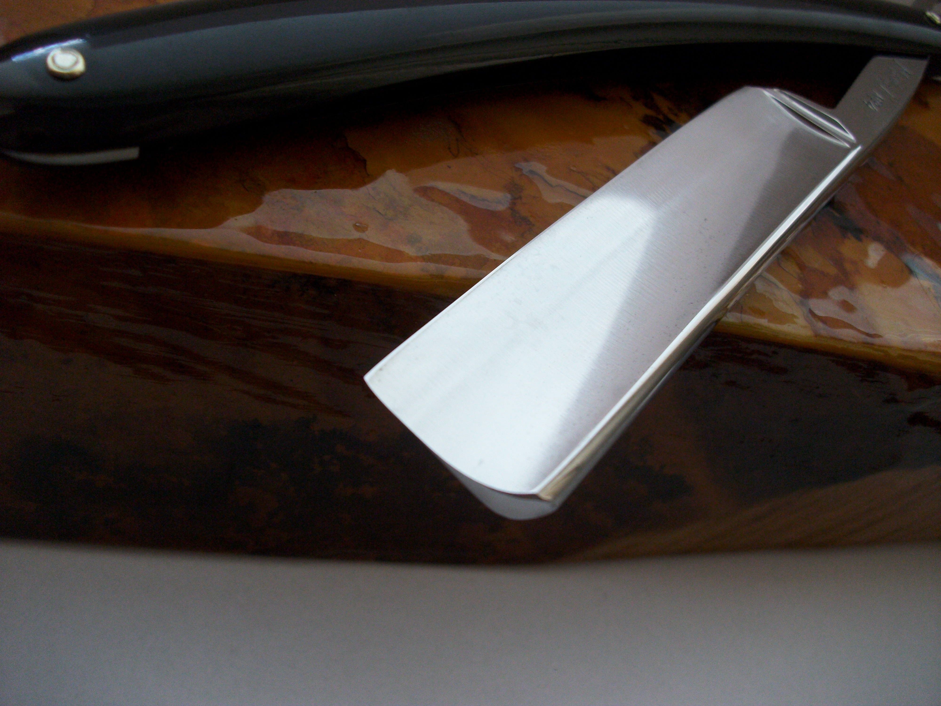 Heljestrand MK№4 Элита Шведского бритвостроения, углеродистая сталь, ширина полотна 17мм, длина режущей кромки 65 мм (из за скола на кончике была укорочена примерно на 3мм). Хорошее состояние полотна, родной сатин очень живой, геометрия на высоте. Финиш на пародистом Японском натуральном камне. Ручка - эбонит.