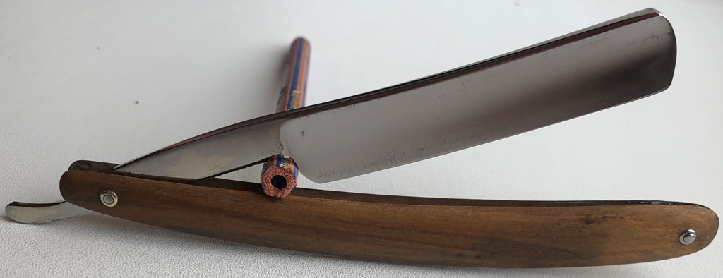Ширина полотна-17.5 мм Толщина обушка-4.5 мм Форма лезвия-полная вогнутость. Углеродистая сталь. Бритва непользованная, но пришлось разобрать и немного освежить полотно от патины. Пины поменял на немецкие втулки, с добавлением внутренних шайб, для порядка.Сталь чистая, без видимых дефектов.Очень красивая текстура ручки.Наверное, это не бук.Вижу такую ручку впервые, на таких бритвах.Родная коробочка в комплекте!Заточена и готова к бритью.Не пропустите красивый во всех отношениях и редкий экземпляр. Цена-4500 р с доставкой. ПРОДАН Внимание! Важная информация! Spoiler Show