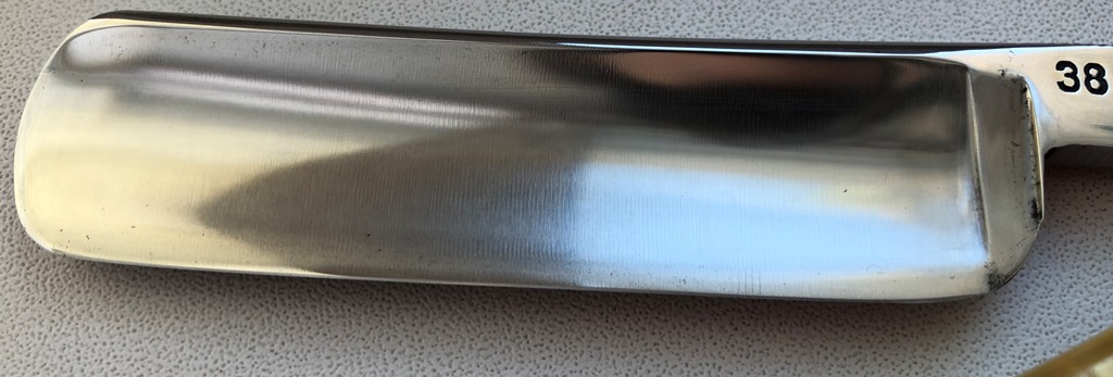 Ширина полотна-17 мм Толщина обушка-3.8 мм Форма лезвия ближе к полу клину. Углеродистая сталь. Бритва начала 30-х годов 20-го века.Бритва в прекрасном состоянии для своих лет. Следов пользования не заметил.Разобрал, убрал окисление в районе осевого пина и немного освежил полотно на самых тонких абразивах.Штамп пробит не четко, но это , как я понимаю, оригинальное состояние, так как на фото можно увидеть остатки защитного покрытия металла, как раз поверх штампа на эрле. Родная деревянная оправа также в идеальном состоянии.Также, идеальная геометрия изготовления клинка:кромочка еле уловима и равномерна по всей длине.Сталь чистая и без видимых дефектов. Родная коробочка в комплекте! Заточена и готова к бритью. Цена-4800 р с доставкой. ПРОДАН Внимание! Важная информация! Spoiler Show