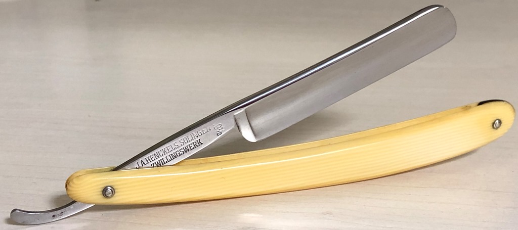 Все 4 бритвы разных моделей, в состоянии идеальное или близкое к идеальному... Непользованный J.A.HENCKELS.SOLINGEN ZWILLINGSWERK модель 72 Ширина полотна-20 мм Толщина обушка-5.8 мм Полная вогнутость. Сталь условно нержавеющая-FRIODUR INOX Бритва не разбиралась и не ремонтировалась, не имеет следов пользования.Заводская шлифовка и полировка. Полотно без царапин, следов окисления и других дефектов.(немного сошла синяя краска с букв на полотне, но это не принципиально).Идеальная геометрия клинка:кромочка равномерна по всей длине и еле заметна.Заточена и готова к бритью. Цена-9500 р с доставкой. ПРОДАН Spoiler Show