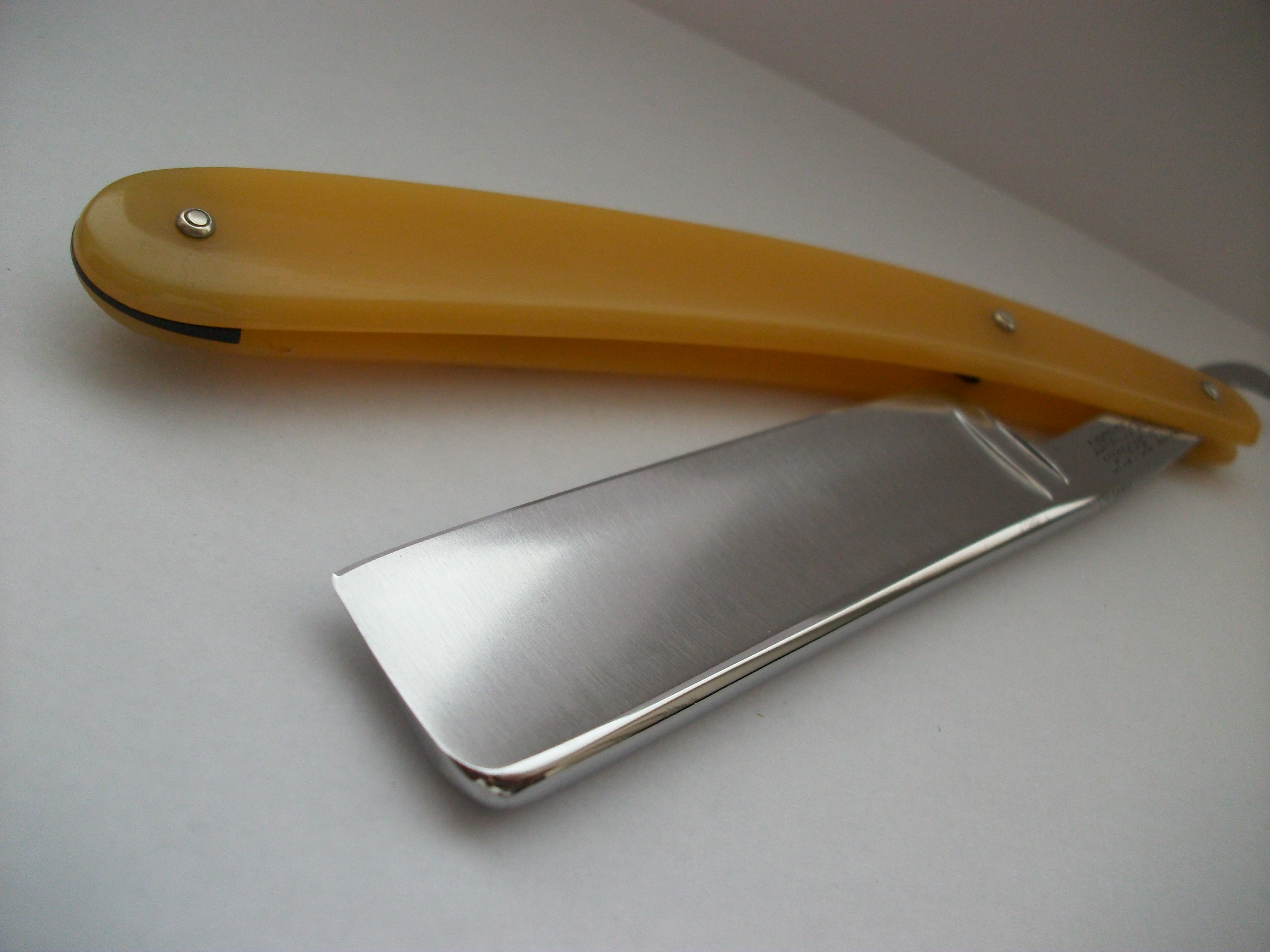 Еще один винтажный китаец. Углеродистая сталь, ширина полотна 20мм, длина режущей кромки 70мм, ручка из пластика. Заточена и готова к бритью.