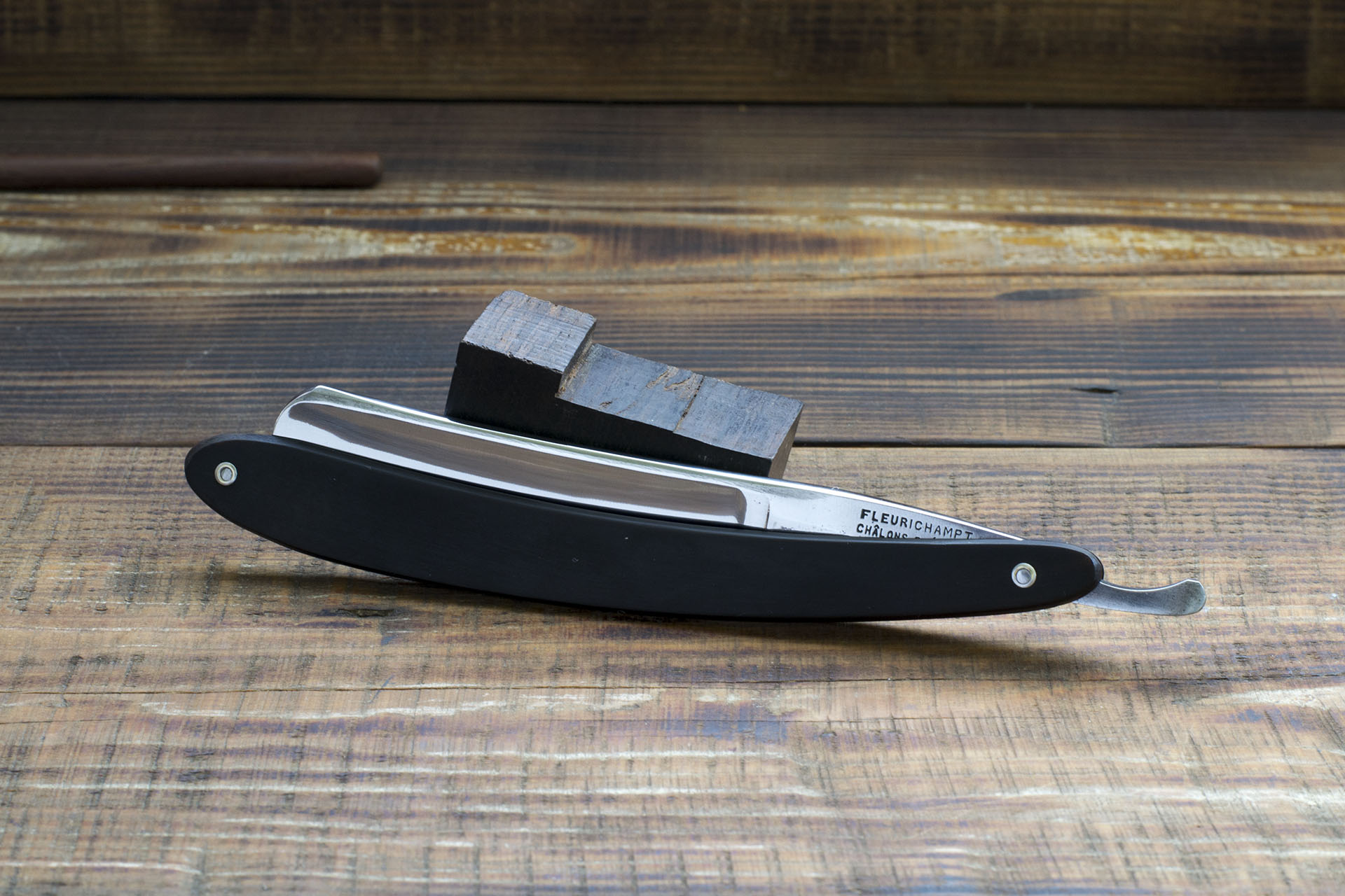 Fleurichamp Французская опасная бритва, конца 19 века, произведенная для некоего мсье Fleurichamp из города Шалон-ан-Шампань, бывшего Шалон на Марне (Châlons-sur-Marne). Почему я думаю, что Флеришам не является производителем? Очень просто, Шалон никогда не был центром кузнечного производства во Франции, кроме того всегда был мелким административным городом, являвшимся центром региона. Вероятно производство данной бритвы стоит отнести к городу Ножан или Тьер, хотя первый вариант более вероятен, так как Ножан был гораздо ближе. Сама бритва по ощущениям использовалась очень мало и вероятно не точилась. Судя по некоторым внешним признакам - судьба ее была очень проста, куплена, опробована с заводской заточкой, далекой до идеала и отложена до лучших времен, которые наконец то наступили. Бритву разобрал, слегка почистил и заточил. Великолепное качество стали, вся та же кованная из литых заготовок углеродка, геометрия полотна на высоком уровне, фаска режущей кромки тонкая и почти равномерная. Ширина 17.4 мм, роговая рукоять с костяным клинышком. Отлично подходит для повседневного бритья и окантовки Продано Цветущий Луг Show