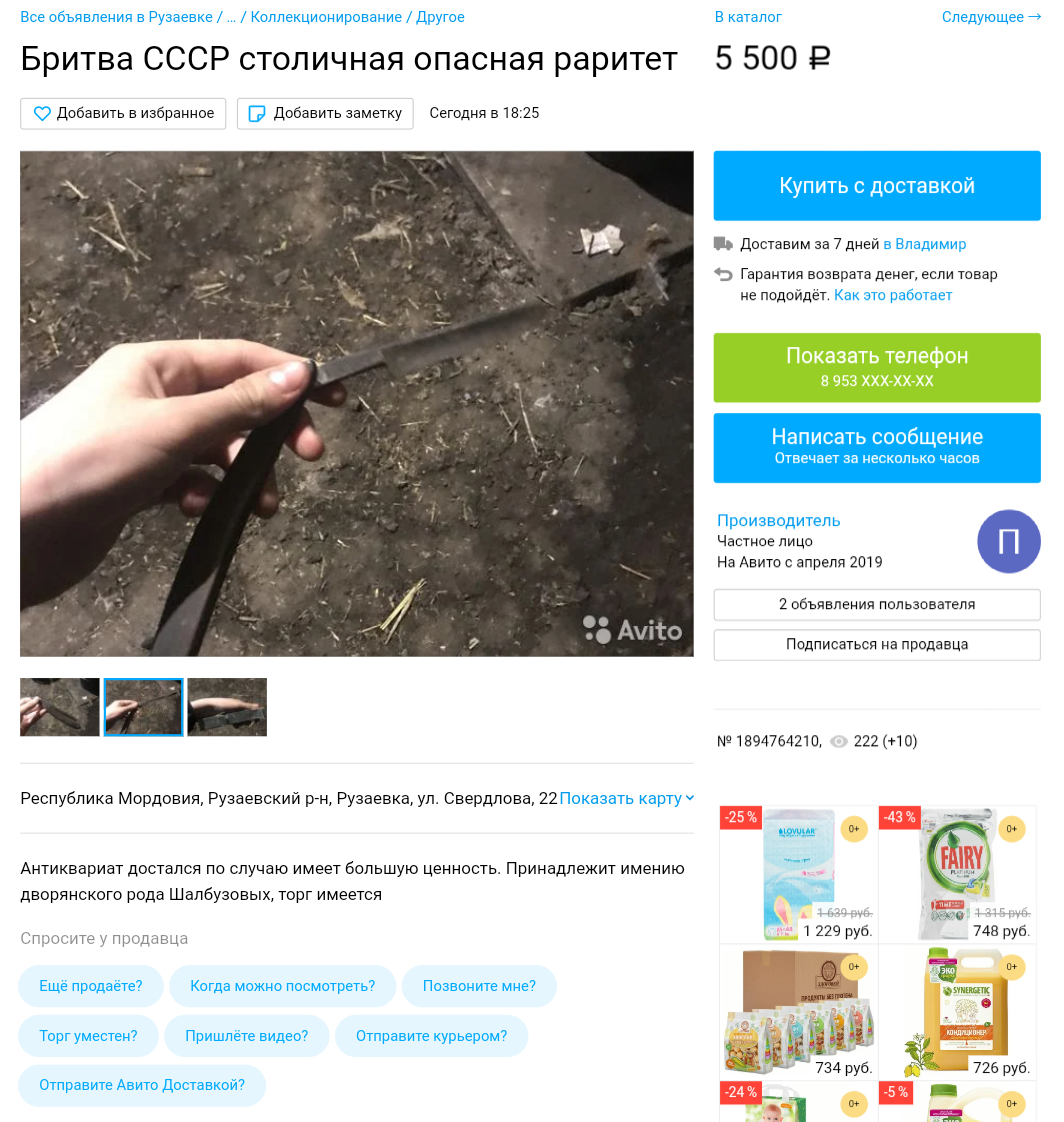 Аукционы: плагиат, развод и "великолепные" описанияРемонт опасных бритв, звонить с 11-00 до 23-00, +79267729357, (viber, whats app, telegram, VK), спросить Олега.