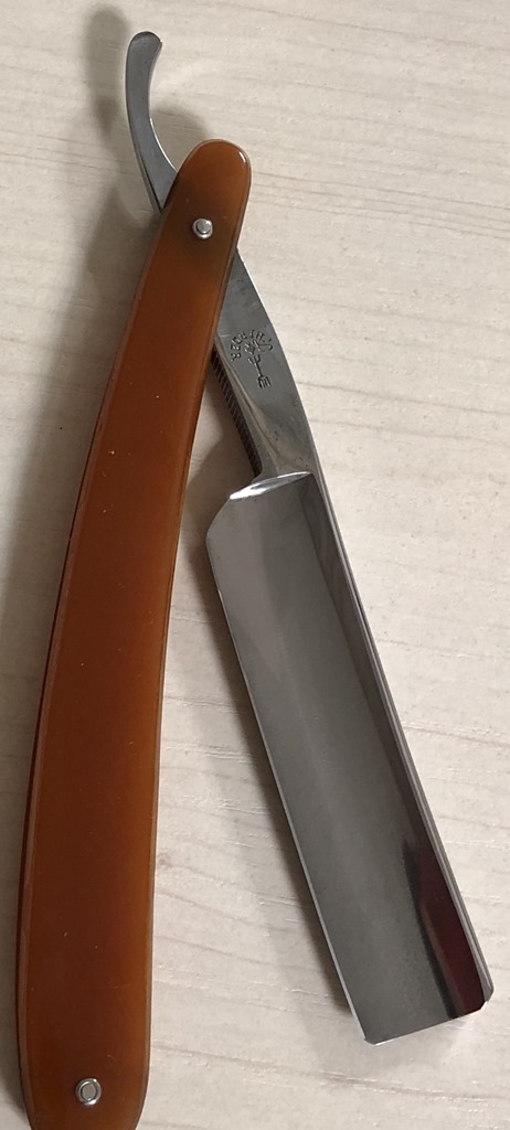 Ширина полотна-21 мм Толщина обушка-5.5 мм Форма лезвия-1/2 клина Углеродистая сталь. Бритва в очень хорошем состоянии, для своих лет.Не разбиралась и рне ремонтировалась, с минимальными и аккуратными следами пользования. Родная шлифовка и полировка полотна.Тяжёлая бритва, с мощной трёх-пиновой оправой.Сталь и кромка чистые, без видимых дефектов. Идеальная геометрия полотна..Красивая, с характером бритва, будет отличным дополнением для любой коллекции.Заточена и готова к бритью. Цена-6500 р с доставкой. ПРОДАН Внимание! Важная информация! Spoiler Show