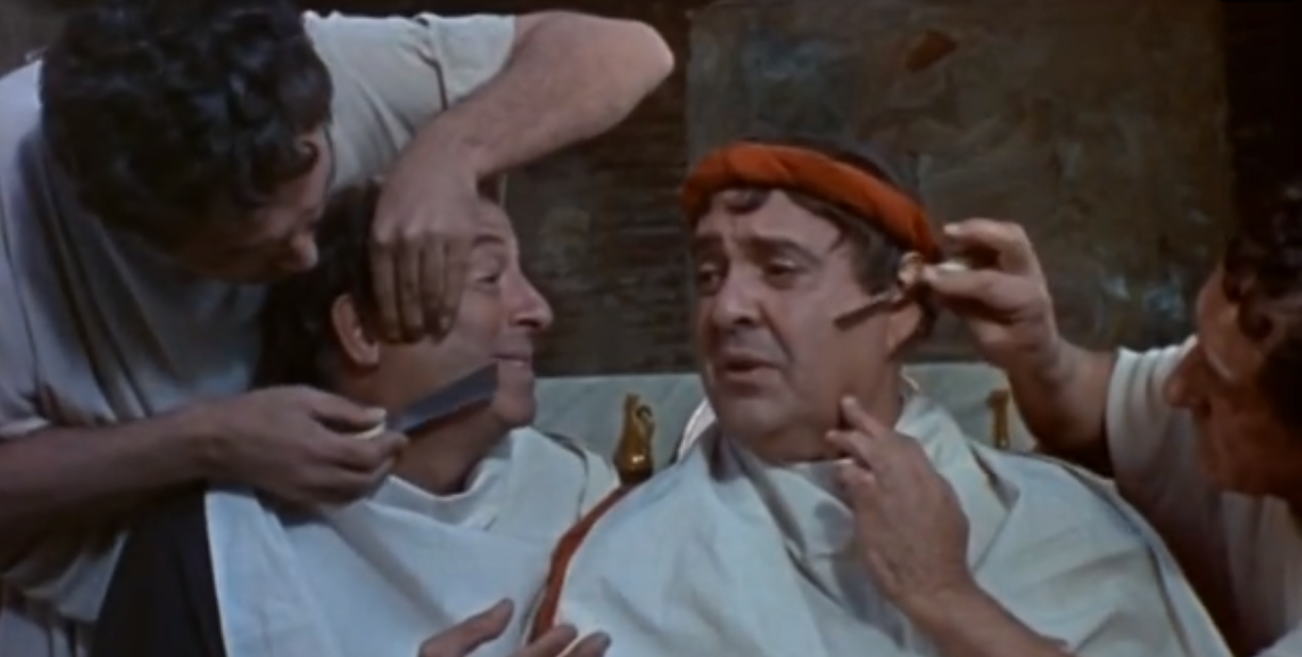 A Funny Thing Happened on the Way to the Forum (1966) https://ok.ru/video/34988034729?fromTime=2517 С 41:57 бритьё, бритвы прямые. Ссылка с привязкой ко времени.