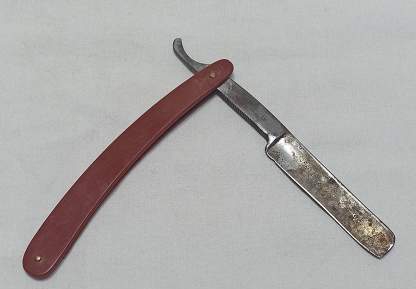 С обратной стороны на эрле №7. Ручка - кость, родная 99%. Коробка не читается, шрифт проглядывается кириллица. "Завод Стальных Изделий" Сов. Р.П.Т. Москвакоробочка - артель Бритва, 52 год, не родная
