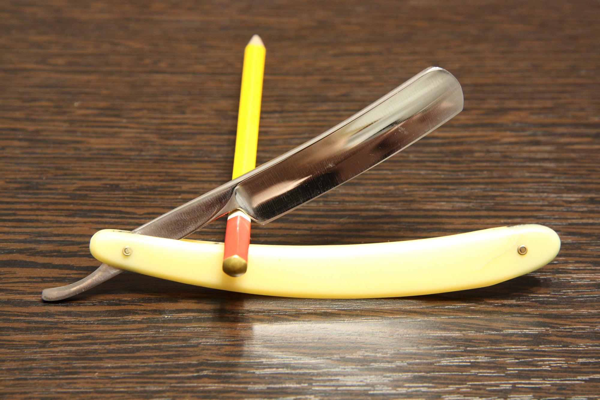 Опасная бритва Ока, завод ЗТВ (Вача), 1956 год. Ширина полотна 16.5 мм, все родное, футляр тоже. Бритва попала ко мне с заводской заточкой, вручную почистил пастами и заточил. Подготовлена мной к бритью. Отличная бритва из водной серии, куда еще входили Кама, Волга, Яхта. Бреет очень эффективно. Цена - руб. К бритве рекомендую приобрести ремень для правки опасных бритв моего изготовления из итальянской кожи (подробнее на странице 4, объявления 56-58). Spoiler Show