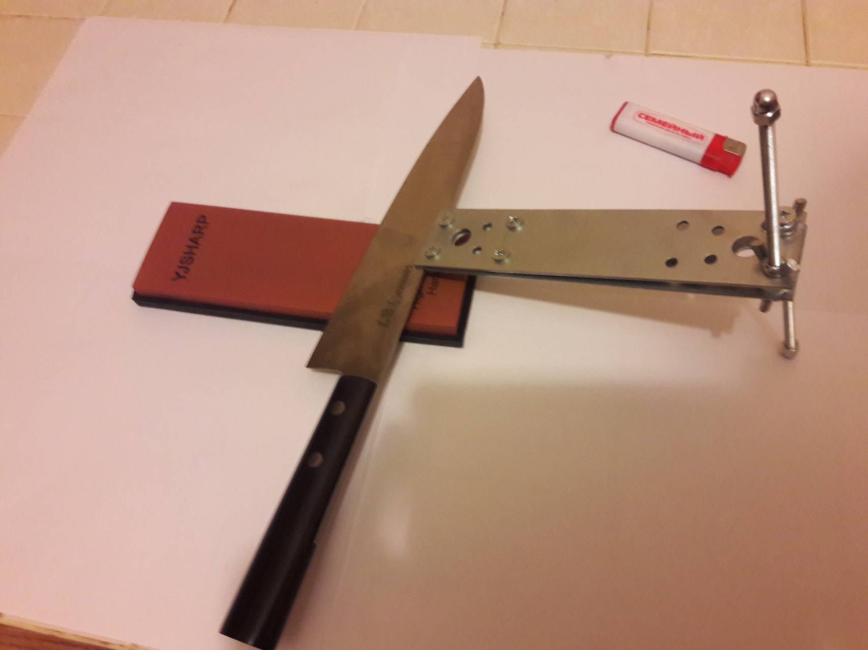 Кухонные ножи-способы заточки.На Ганзе года 2 назад человек выкладывал список и чек из Лероа, по моему на 250 рублей. Он взял все эти детали там и смостырил подобный костыль. Фото, видео и инструкции там были. Так что ничего удивительного не вижу