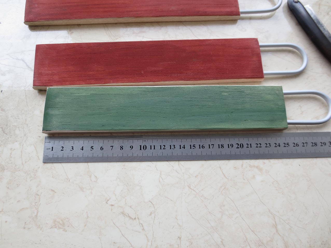 Продаётся от RuslanKлезвия опасной бритвы. Почувствовали, что ваша бритва затупилась и бреет уже не так резво, как в начале, вместо дорогих и не очень камней, можно самому довести свой инструмент до нужного комфорта. Размеры дощечки - 250 х 50 х 10 мм. Материал - бальса, ручка - 5 мм алюминиевый пруток. Боковые стороны отшлифованы и покрыты датским маслом. Зелёная сторона - французская паста Dialux, красная - сваренный по специальному секретному рецепту, удостоенный многих медалей и призов, фирменный крокус от нашего форумчанина ivan-3. Для обеспечения максимальной рабочей площади ручка сделана съёмной и легко может сниматься, одеваться, а также подвешиваться на крючок. Отправка почтой России производится в картонной упаковке. Цена дощечки - 750 руб, цена с доставкой почтой РФ - 1000 рублей.