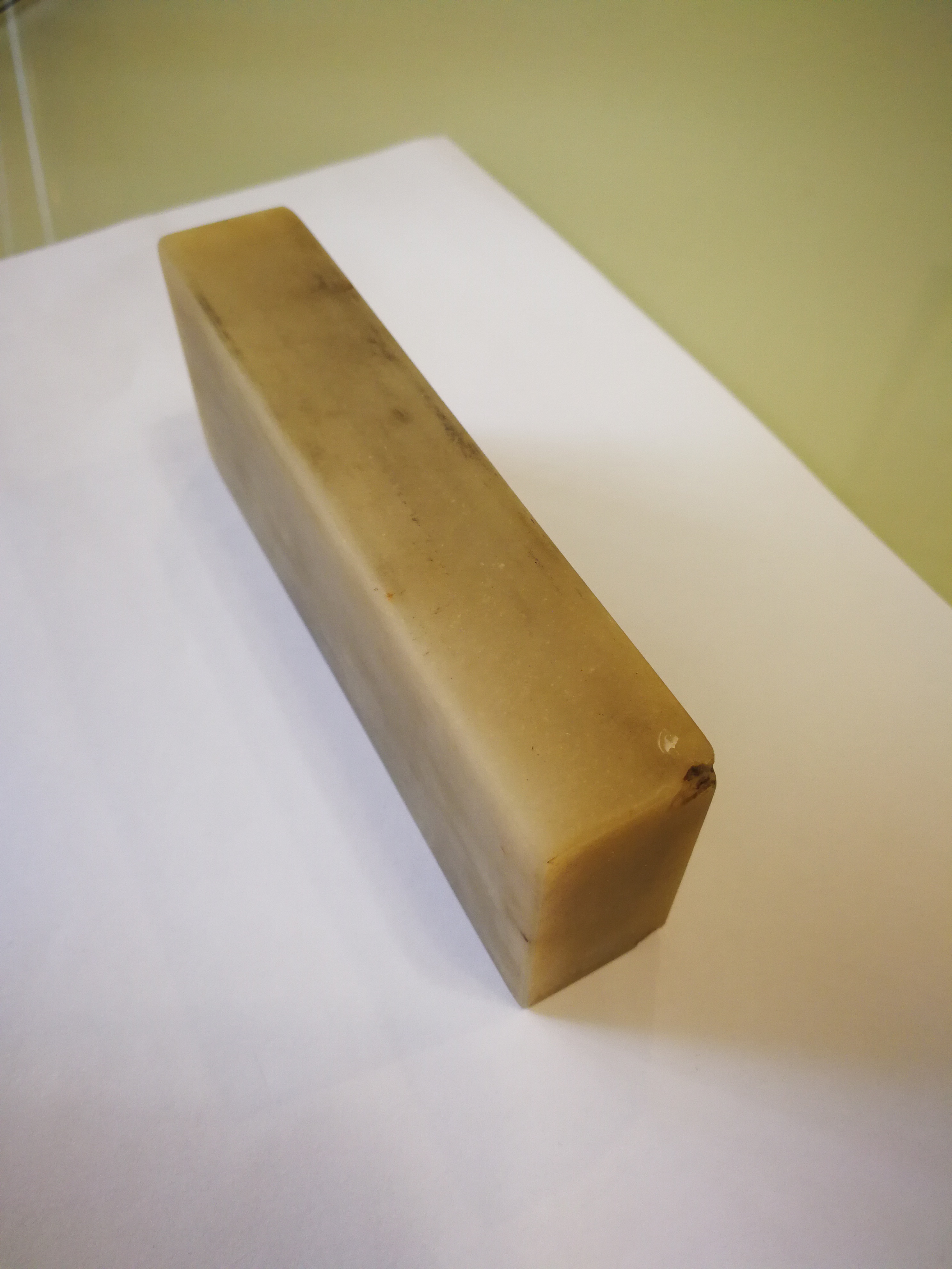 Помогите определить каменьЗдравствуйте уважаемые. сегодня на барахолке попался вот такой камень. цена 200 руб. на вид как хозмыло. на ощупь прохладный, увесистый. помогите пожалуйста определить, что это за камень. это он грязненький. а это я его помыл
