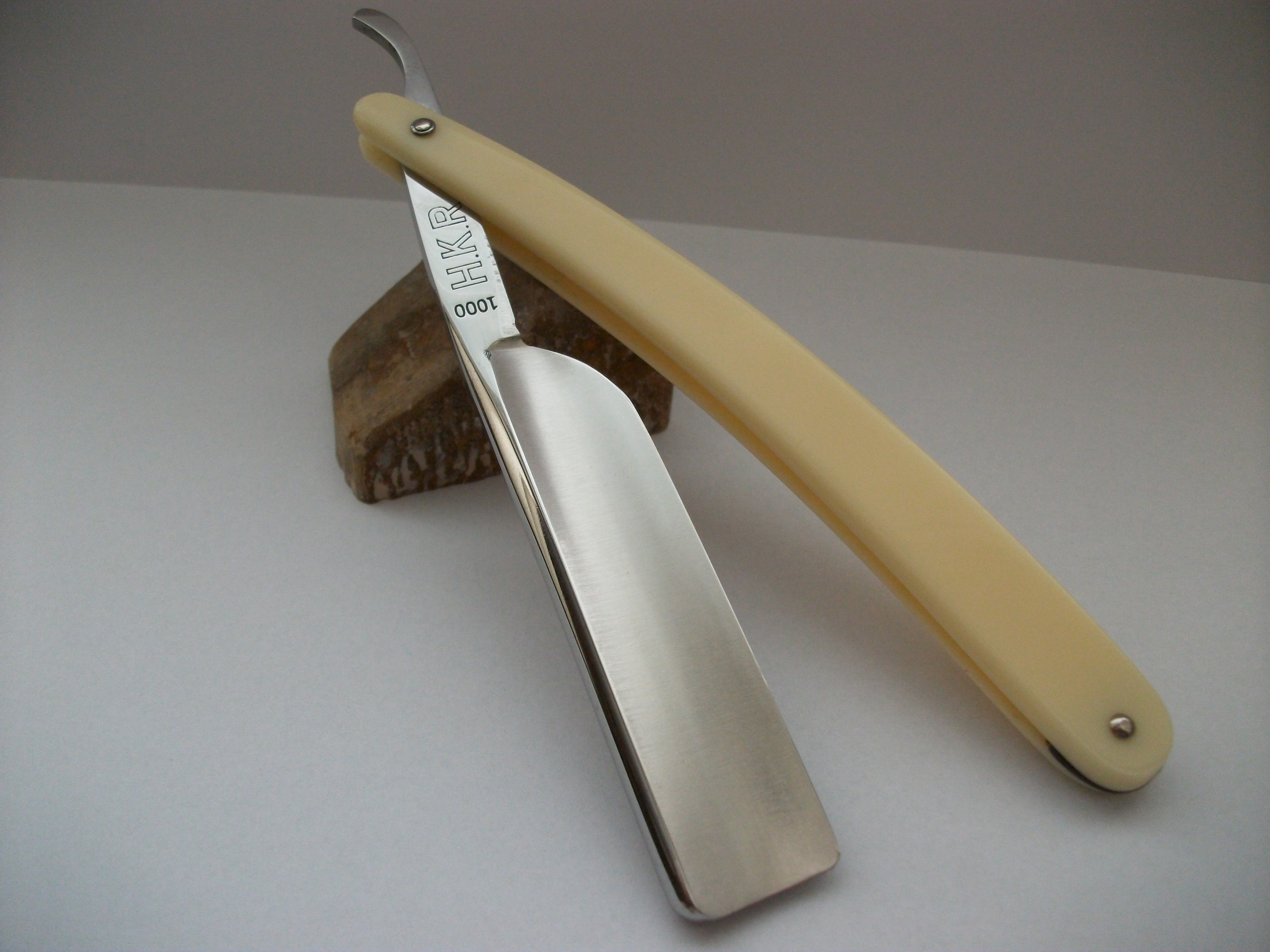 Углеродистая сталь, ширина полотна 21мм, длина режущей кромки примерно 67мм, вогнутость полная. Ручка пластик. Имеется модное клеймо For Barbers Use