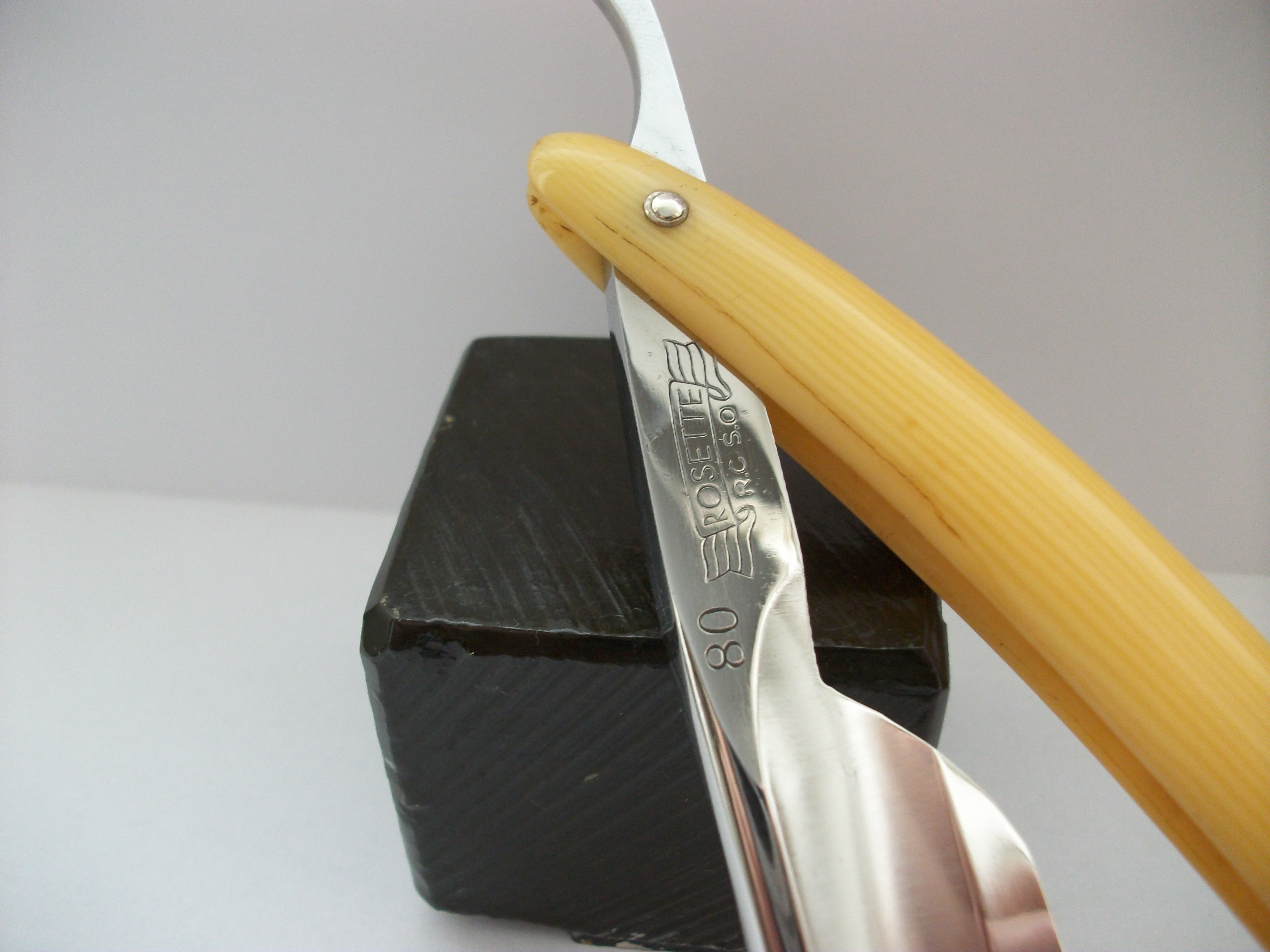Достаточно редкий Японец Rosette с редким гриндом Belled Hollow и достаточно короткой кромкой в 56мм, лично я очень люблю бритвы с короткой РК. Ширина полотна 22мм, углеродистая сталь, ручка пластик. Хорошая родная геометрия.