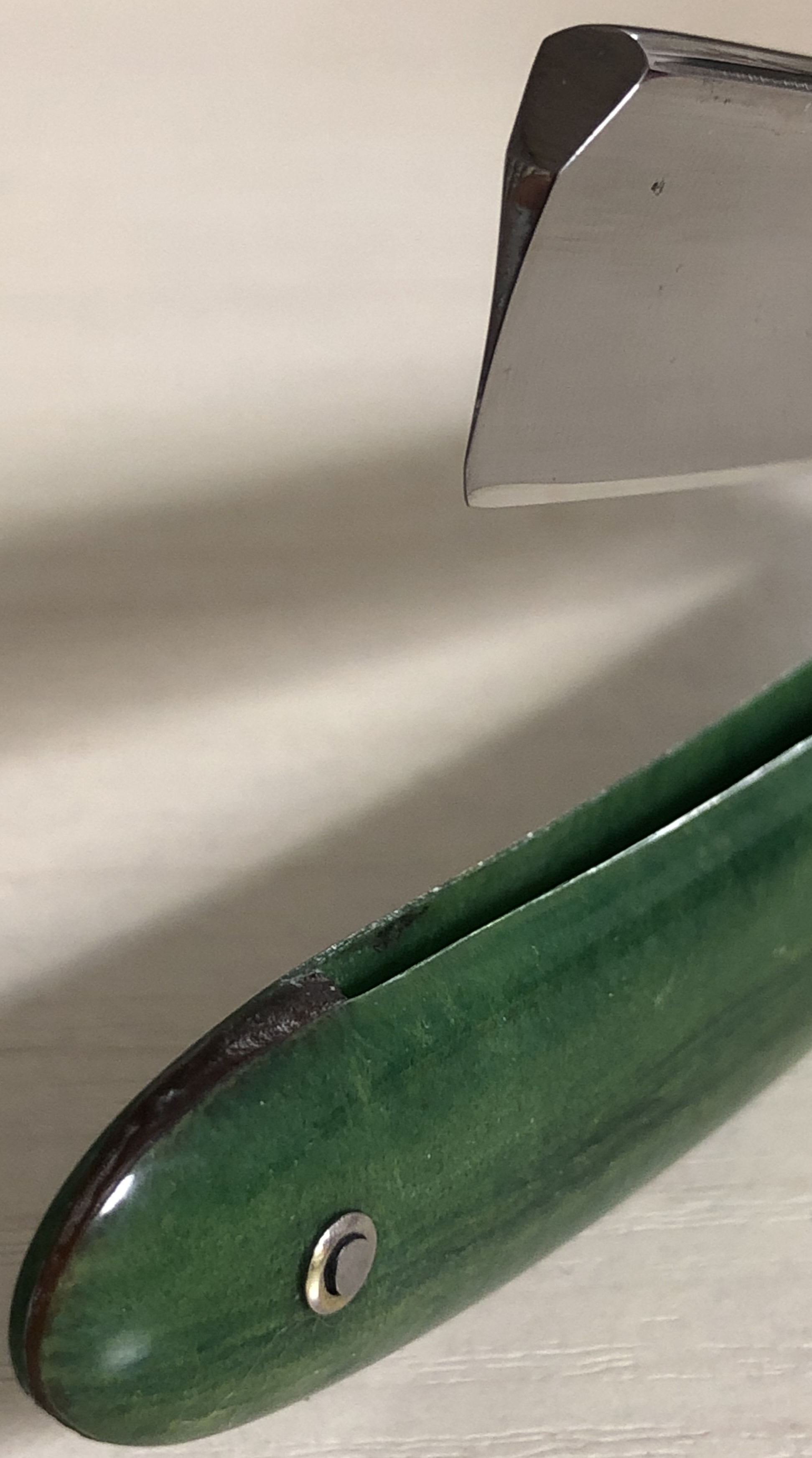 И тоже с зелёной оправой и 1955 года. Интересный такой скос носика,который, насколько мне помнится, нигде на Стизах больше не повторялся.Виден также"горбатый "обушок.