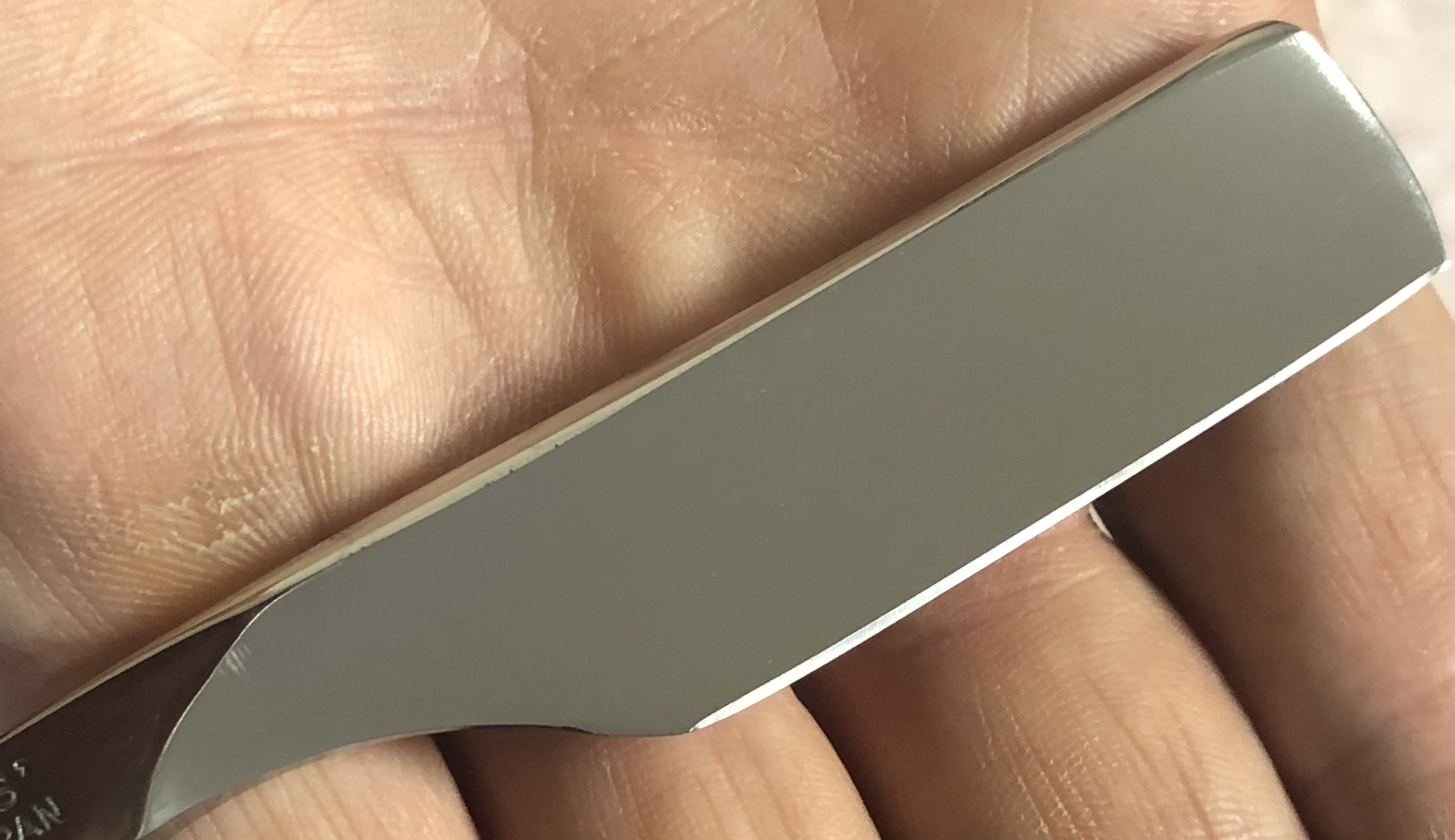 Ширина полотна-20 мм Толщина обушка-6.5 мм Углеродистая сталь. Форма лезвия-1/2 клин Примерно 50-60-е годы . Весьма приятная бритва во всех отношениях. Разобрал,почистил, отполировал и снова собрал, заменив пины на немецкие втулки.Снова не стал идти легким путем и шлифовал клинок на камнях, вручную.Долго, муторно, но получаешь удовольствие от процесса, заодно всегда можно проконтролировать то, что делаешь , чтобы не убрать лишнего и не перегреть с дуру металл..Ясное дело, что задачи не стояло получить идеальное зеркало, как это можно увидеть на множестве новодельных бритв:заплывшее от полироли зеркало. Тут скорее умеренный, легкий продольный сатин, хотя под другим углом ,если смотреть, то отражение очень хорошее.Приятный голубоватый оттенок от ручной шлифовки и полировки. Короче, достаточно красивая, практичная, удобная и недорогая бритва. Сталь не имеет визуальных дефектов, геометрия на уровне.Не пропустите рабочий инструмент за вменяемые деньги. Заточена и готова к бритью. Цена-6500 р с доставкой.ПРОДАН Внимание! Важная информация! Spoiler Show