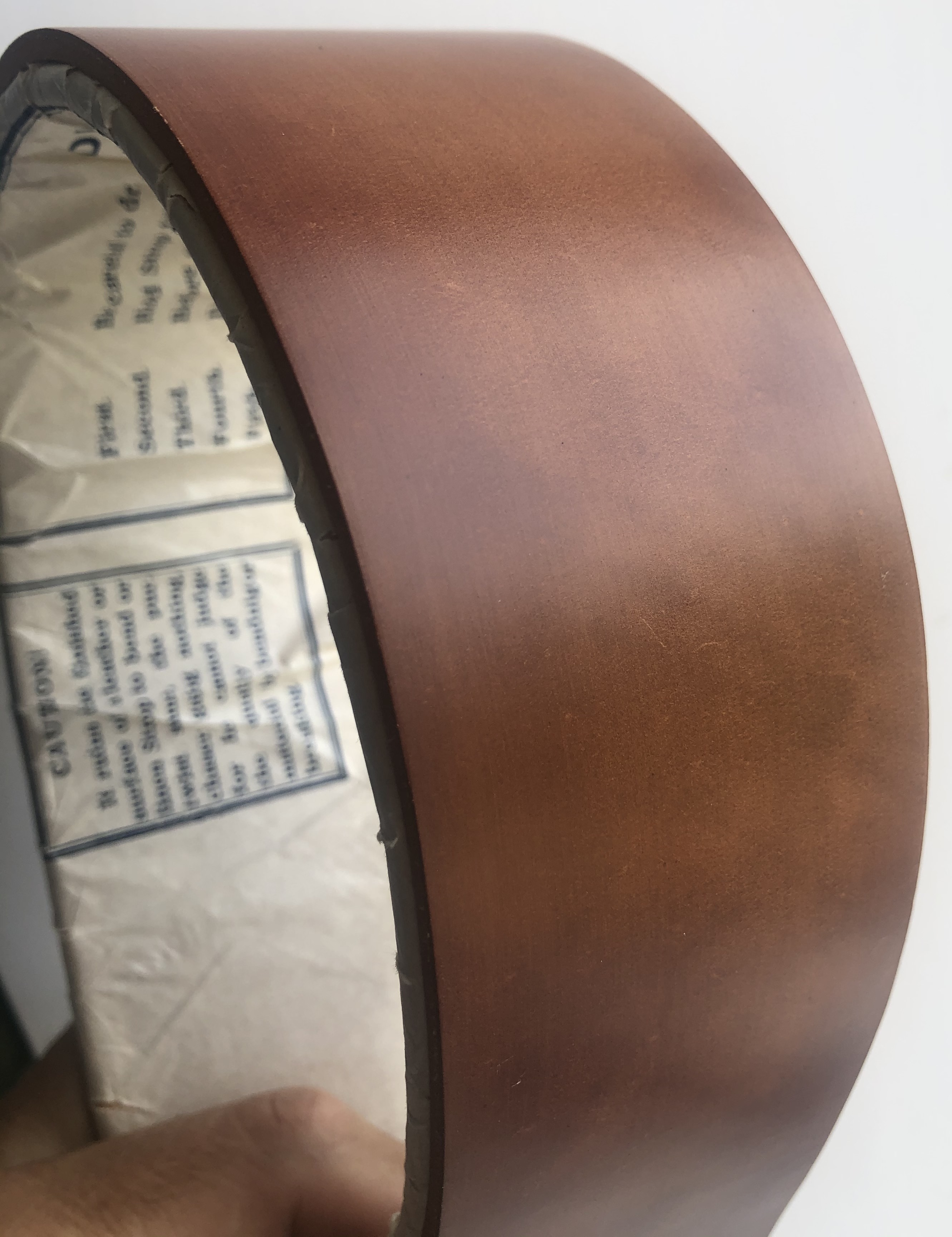 1.Непользованный ремень STALLION ELITE 60000 Размеры:600х63х4.5(3)мм Из старых запасов.Смею предположить, примерно 70-80-е годы производства. Кордаван плотный, без каких либо дефектов в виде прожилок, шрамов, растрескиваний и т.д.Не идет ни в какое сравнение с новодельными ремнями Канаяма от Наоми сан, где кожа более жидкая и тонкая. Со временем кожа разработается, отполируется до зеркального блеска и будет работать ещё более эффективно и приятно. На мой взгляд такое качество лошади сейчас никто не делает и даже современные японцы. Ремень был произведен в то время, когда за качеством очень серьёзно следили(о чем говорит штамп на ремне) ,и была конкуренция. Вторая часть-льняной холст, умеренно мягкий и не нуждается в дополнительном смягчении. Снял древние этикетки с ремня и в бой. Сейчас такие ремни практически не встречаются, так что не пожалейте денег на вещь, которая дороже золота. Цена-20500 р с доставкой.ПРОДАН 2.Японский ремень из кордована TOKIWA RAZOR STROP 47-NIAGATA Иероглифы 耐水研磨仕上 検査済 : 耐水 (TAISUI) водостойкий, водонепроницаемый 研磨 (kenma) шлифовка, полировка Finishing上 (SHIAGE) отделка, последний штрих 検査済-проверенный. Размеры:600х64х4(3)мм По всей видимости ремень непользованный. Во всяком случае следов пользования и износа не заметил. Было несколько царапок от времени, но они легко убрались на тонкой шкурке. Далее отшлифовал на шкурке до 2500.Кожа в идеальном состоянии, без природных и других дефектов.Плотная, но эластичная кожа со временем станет ещё мягче и приятнее в пользовании. Вторая часть-льняной холст, был натерт нагурами(делали японцы так часто). Поэтому я простирал эту часть ремня на деликатной стирке, в связи с чем он сейчас чистый и без посторонних включений. Прекрасный и достаточно недорогой вариант. Цена-12500 р с доставкой.ПРОДАН Если кому то нужны будут дополнительные фото, то дайте знать. Spoiler Show
