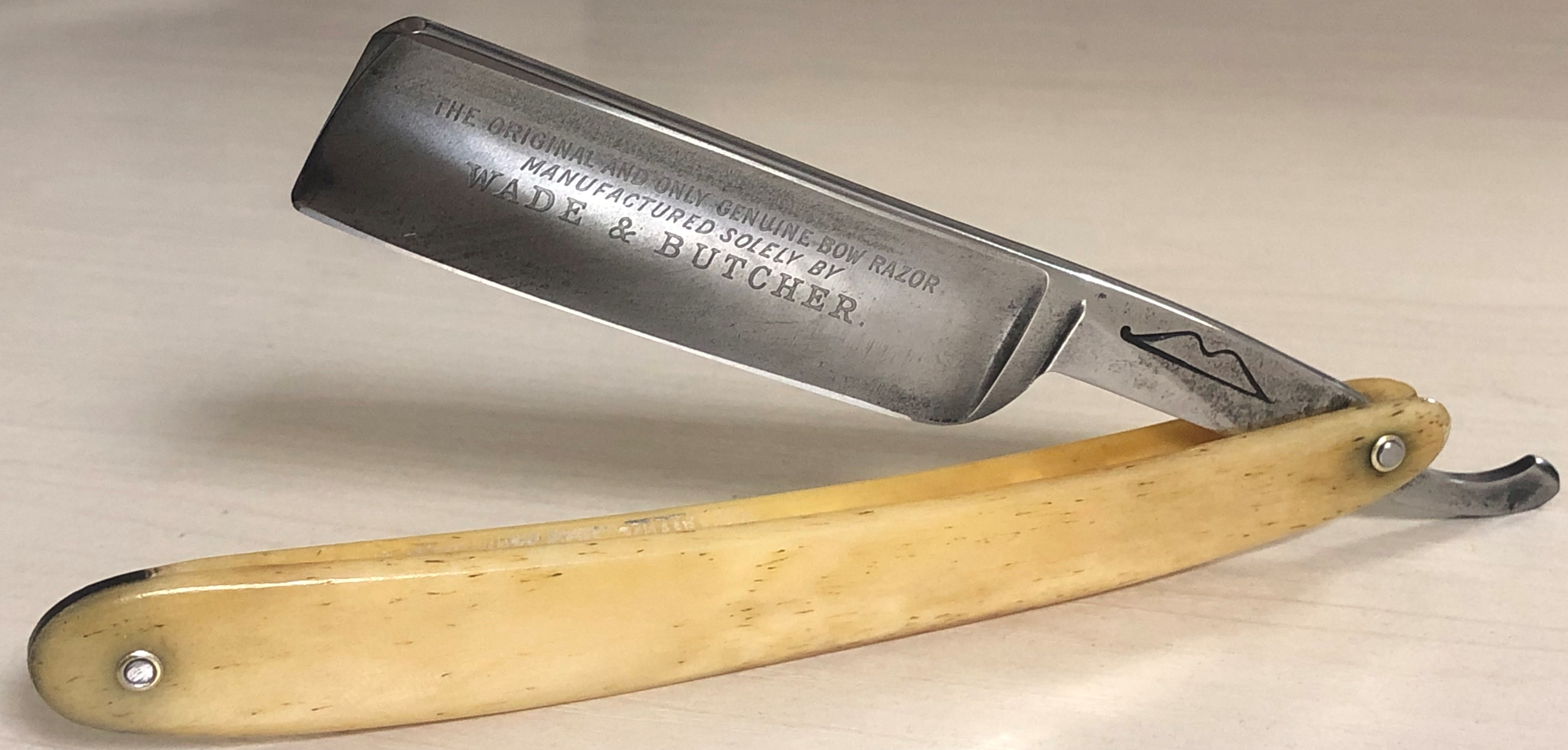 Бритва в прекрасном состоянии для своих лет, с благородным налётом патины по всему клинку, что встречается довольно редко. Естественно, удалять такой "налёт старины" у меня рука не поднимется убирать.Только небольшая чистка металла,для придания полотну равномерной патины.Бритва имеет незначительные и еле уловимые следы использования, а также"родную" шлифовку и ширину клинка, что для такого почтенного возраста является большой удачей.Грани не зализаны, а сама гравировка на полотне чёткая, без затёртостей..При разборке поменял старые пины на новые, с добавлением внутренних шайб.Идеальная геометрия полотна:кромочка равномерна по всей длине.Ручка из натуральной кости также в состоянии близком к идеальному., без трещин, отгрызанных мест или других дефектов.Мощная, красивая и тяжёлая оправа.Бритва имеет оригинальный и естественный вид, для своего возраста,без каких либо серьёзных вмешательств и может занять одно из почётных мест в любой коллекции бритвомана.Заточена, лично протестирована и полностью готова к бою.