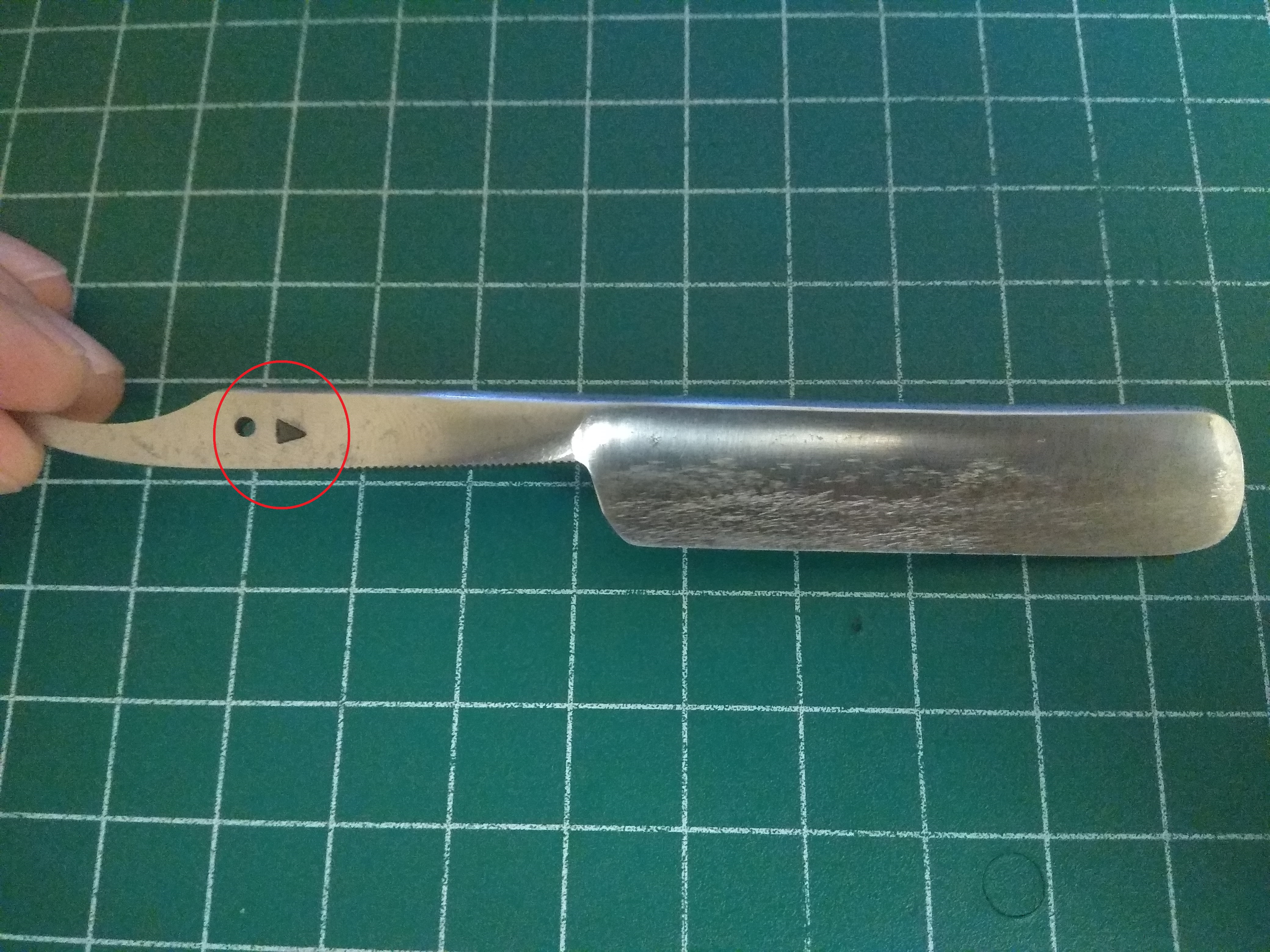 Помогите определить!Господа помогите определить чьих будет этот клин?? всё что есть на нём это треугольник... бритву нашли в таком вот состояний без оправ