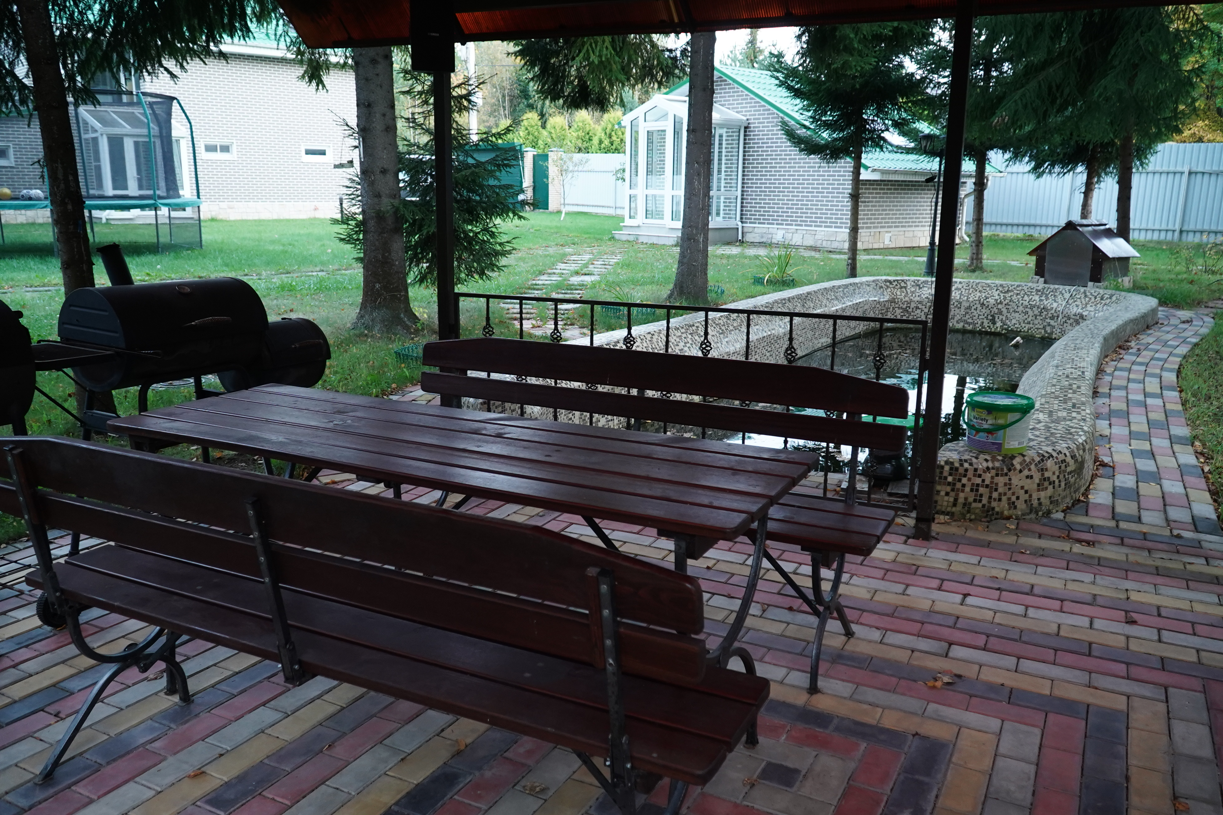 Интересные фотографииДа, этот пруд выстрадан годами, он небольшой, около 5,5 на 2 метра. Глубина в начале чуть больше чем по-колено, в конце - по грудь (не женскую Раз в год полностью сливаю, мою керхером. Работка аццкая. Несколько тележек ила и палок с ветками снизу наверх поднимаем. Это долго и нудно, не говоря уже об откачивании и заливе, откачивается часа 2-3, заливается 2 дня. Потом отстаивается дня 2-3. Раньше на этом месте в лесу была невысыхаемая лужа, потом углубили (когда копали нашли старинную подкову), обложили камнями и закрепили цементом. Но постоянно менялся уровень воды (вода поднималась и опускалась вместе с грунтовой), поэтому его разобрали, уложили единый резиновый кокон, потом обвязка и бетон. Теперь уровень грунтовой воды сам по себе, а пруд сам по себе. Домик позади пруда - это будка для насоса подачи воздуха. Воздух подаётся круглый год: Корм - TETRA для прудовых рыб, банки 15 литров хватает на 2 года примерно, цена 1100 руб. Автокормушку недорогую переделал в независимую от внешних 220 вольт (у нас часто отключают свет), поставил бесперебойник от компа. Иначе настройки кормушки сбрасываются. Доработал "чапку саид" от дождя. Кормушка - подкормка на случай если мы долго не приезжаем, а кормим вручную. Общий вид с навесом у беседки: В общем как-то так...