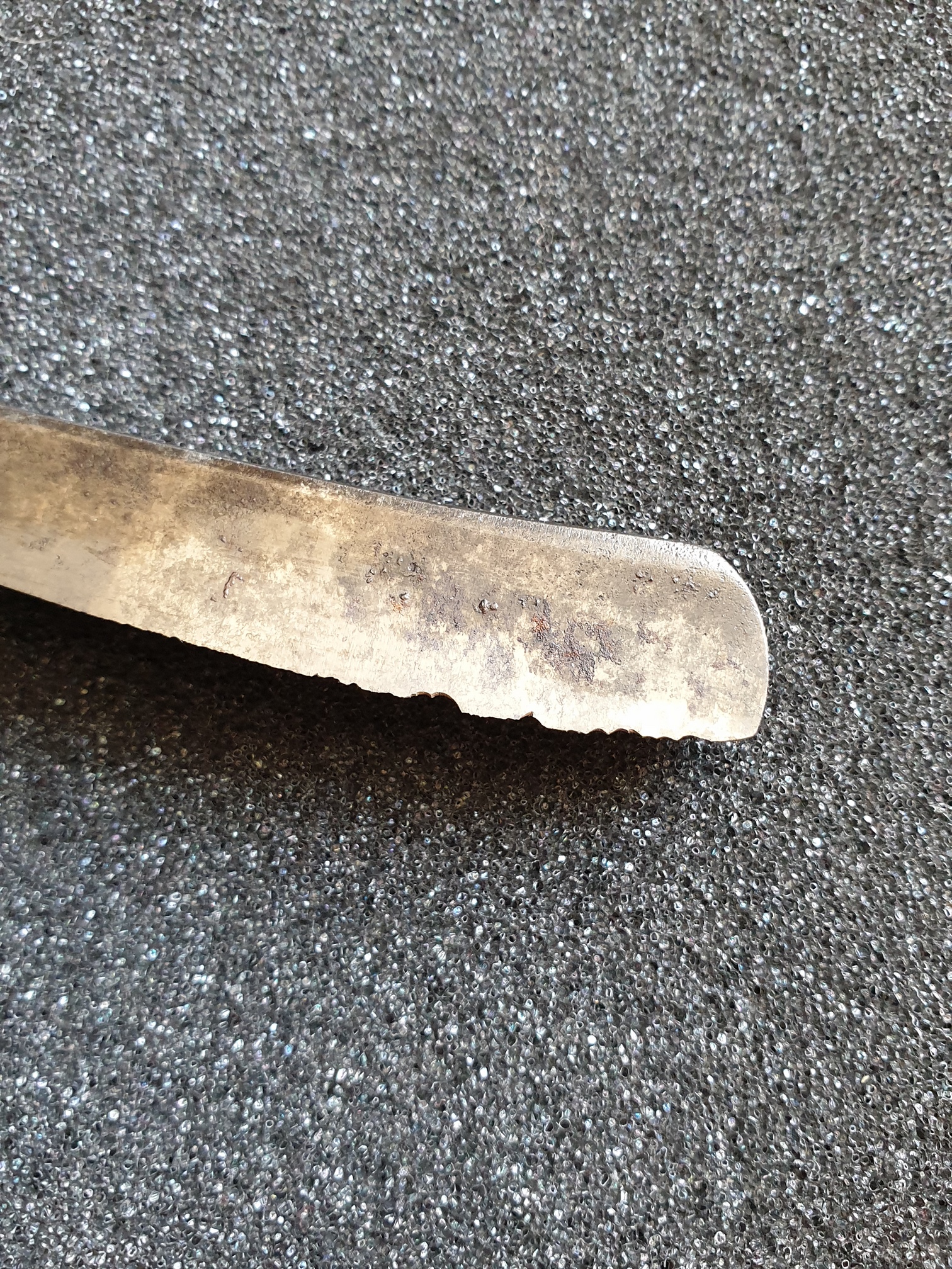 Продаётся от S&T70. Французский клин под восстановление, продается "как есть". Ширина клинка 20мм, без следов уточенности, заводская геометрия, чистые грани, клеймо читается полностью. Ручка из рога, ровная, крепкая, выгрызы по краям. Клинок паркуется в ручку с небольшим закосом. Все родное, бритва не разбиралась, смыта грязь моющими средствами и протерта ручка костным маслом.