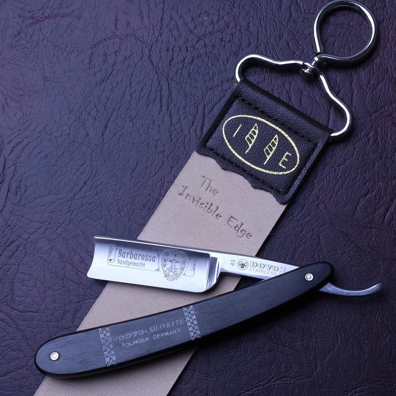5/8-дюймовая DOVO Barbarossa была разработана для нужд парикмахеров и бородатых мужчин. Особенностью этой бритвы является ее короткое лезвие. Это особенно маневренный и точный в управлении инструмент для бритья. С помощью этой бритвы пользователь может формировать и очерчивать свою бороду с точностью до миллиметра. Прекрасная гравюра знаменитого бородатого императора Барбароссы придает красивую изюминку этой уникальной бритве. На мой взгляд, зря сделали двухзаковную пятку - на вид получился какой-то огрызок. И эрль можно было бы удлинить. Складывается впечатление, что это укорот бракованных изделий. А вообще большинство знакомых бородачей использует опасную бритву со сменным лезвием.