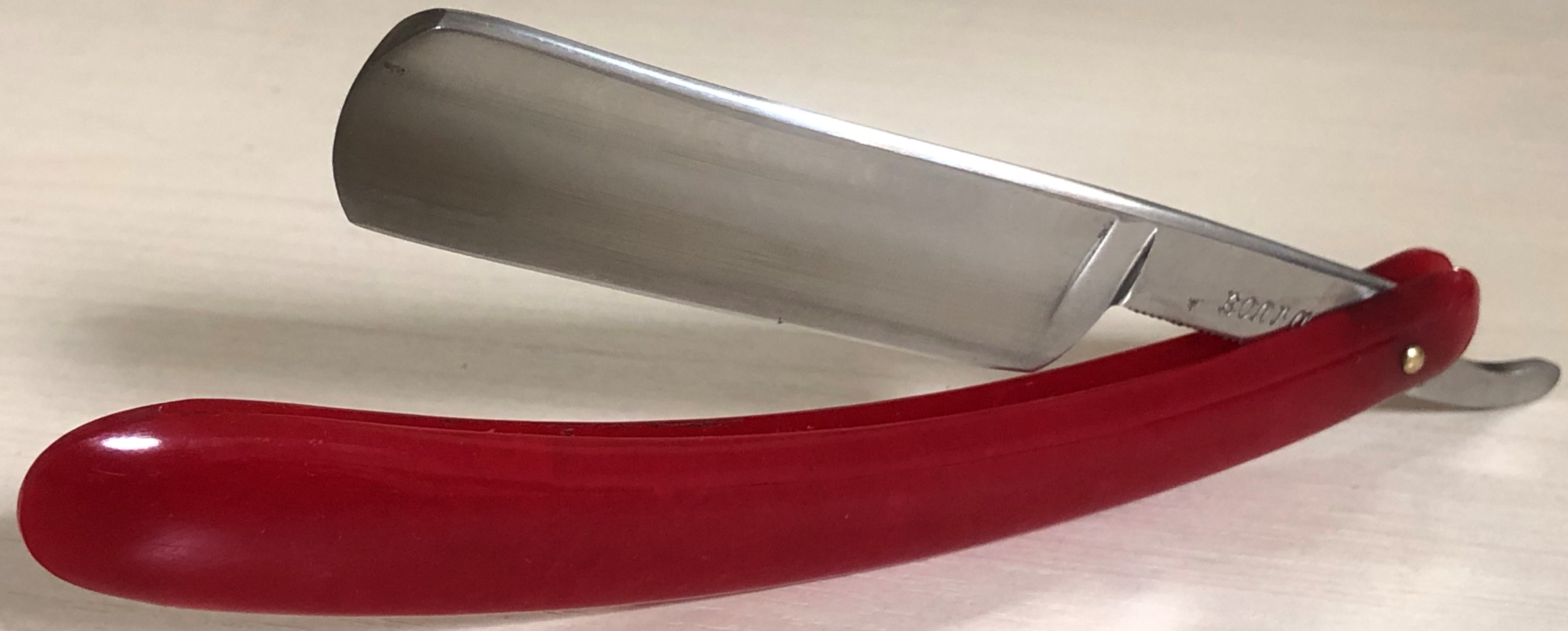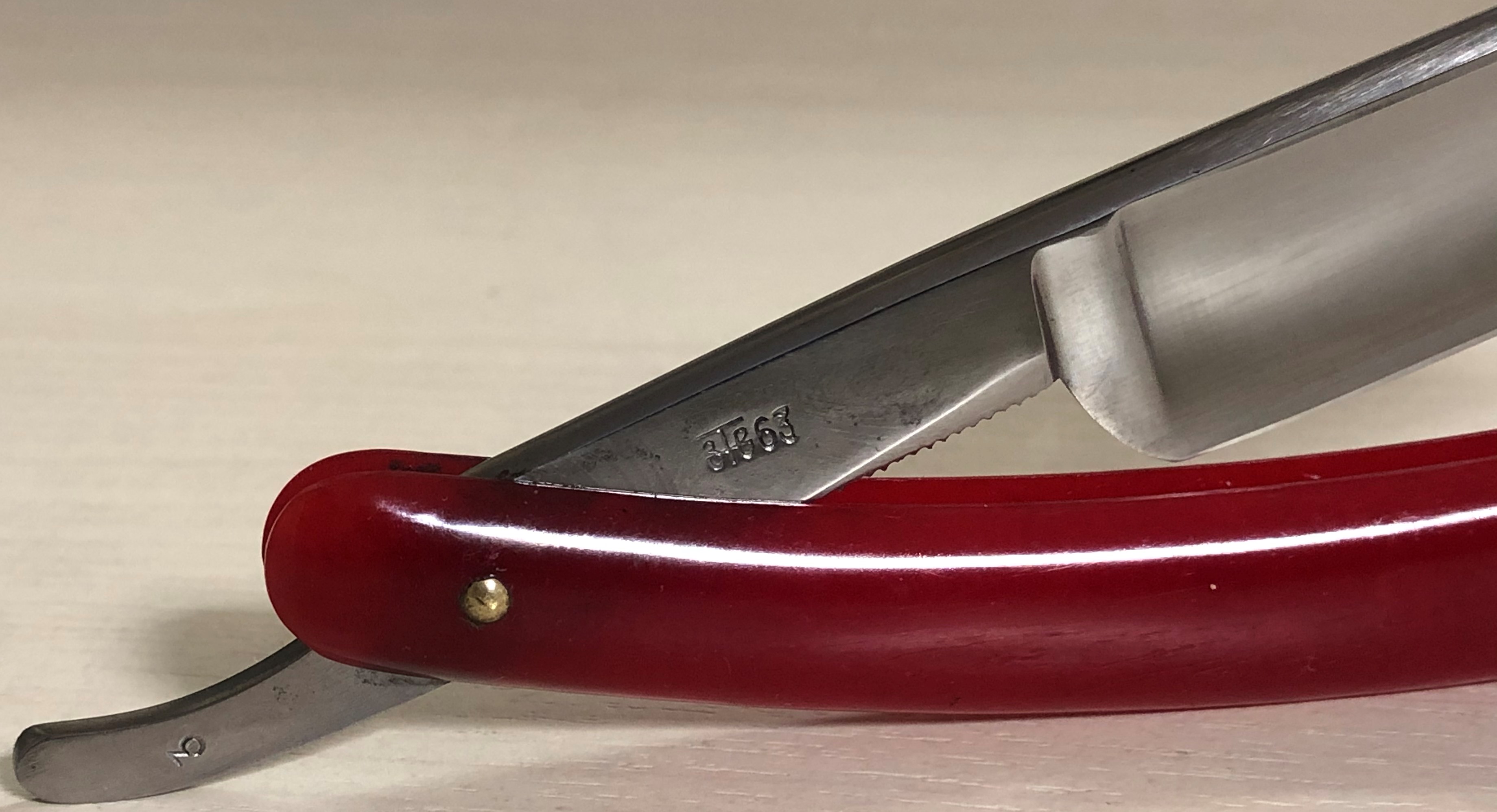 Бритву разобрал, почистил и снова собрал, добавив внутренние шайбы и сохранив оригинальные пины.Идеальная геометрия клинка:кромочка равномерна по всей длине.Очень неплохая сталь с точки зрения заточки.Думаю, что и бритье не разочарует. Родная оправа также в очень хорошем состоянии. Бритва среднего размера,без признаков активного пользования, главное, недорогая, будет отличным вариантом для новичка и просто в коллекцию.Заточена и готова к бою.