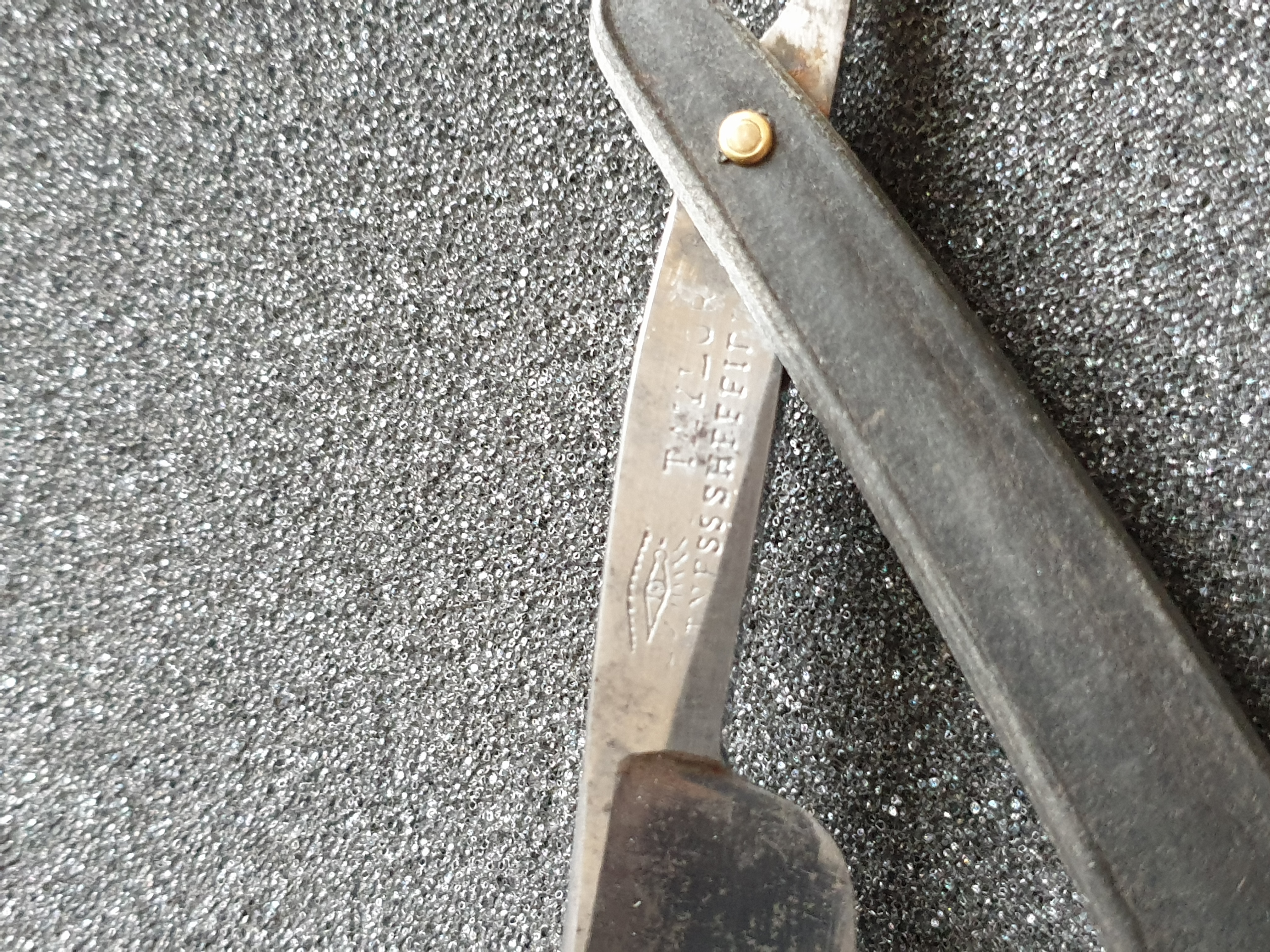 Ширина клинка 20мм, обух 5,6мм, ручка - рог, пины - железо. Все родное, бритва не разбиралась, не восстанавливалась. Одна плашка ручки в отличном состоянии, на второй имеются отслоения рога. Обе плашки ровные, клинышек между ними отсутствует. Родной гринд клинка без существенных повреждений, с двумя локальными пятнами ржавчины в месте касания клинка и ручки в сложенном положении. Клинок паркуется в ручку по центру, без перекосов и закусываний. Поиск по клейму в многотомнике Пажэ дает два упоминания, в первом случае полное совпадение и фамилий мастеров и адреса, они включены в парижский Альманах коммерции за 1830 год, как выходцы (бывшие мастера) из фирмы Pradier (см. Паже том 2, с238). Второе упоминание - совпадает только адрес (улица и номер дома из клейма на бритве), в 1839 году в парижской выставке садовых инструментов участвовала уже другая фирма с этим же адресом - Bresquignan, 29, rue des Gravilliers, à Paris (см. с888 в 3-м томе). Можно предположить, что эта бритва из эпохи французской Реставрации Бурбонов - 1815-1830-х годов. Ссылки на второй и третий тома Пажэ: https://gallica.bnf.fr/ark:/12148/bpt6k ... texteImage https://gallica.bnf.fr/ark:/12148/bpt6k ... k=107296;4 Бритва продается "как есть", ПРОДАНО Spoiler Show