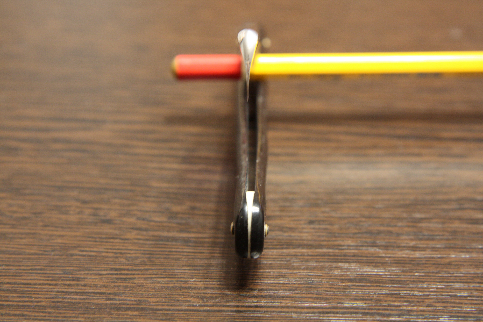 Опасная бритва Москва, завод СТИЗ, 1957 год. Была гравюра на полотне "Крымский мост", счистил. Ширина полотна 17.5 мм, все родное, футляр от какой то другой бритвы. Чистил вручную (остались значительные следы, кромка чистая) подрезал пятку с целью убрать приличный скол, теперь длина кромки как у лезвия тэшки, но бриться удобно, а пятка в бритье обычно участвует мало. Подготовлена мной к бритью. Хорошая твердая сталь, верткая короткая бритва. Цена - руб.