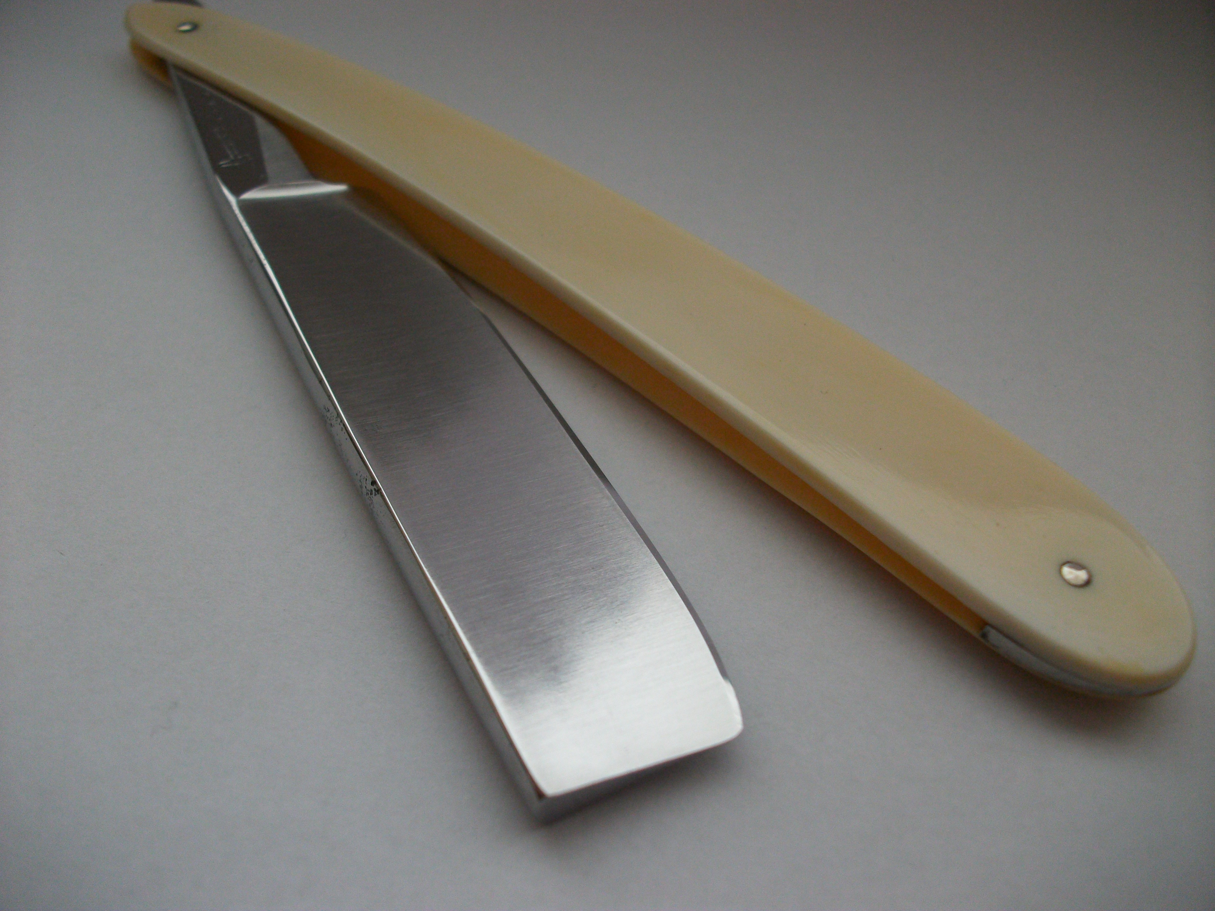 Достаточно популярный среди коллекционеров бренд. Углеродистая сталь, ширина полотна 19мм, длина режущей кромки 72мм, вогнутость полная, ручка - пластик. Заточена и готова к бритью. В комплекте оригинальная коробочка.