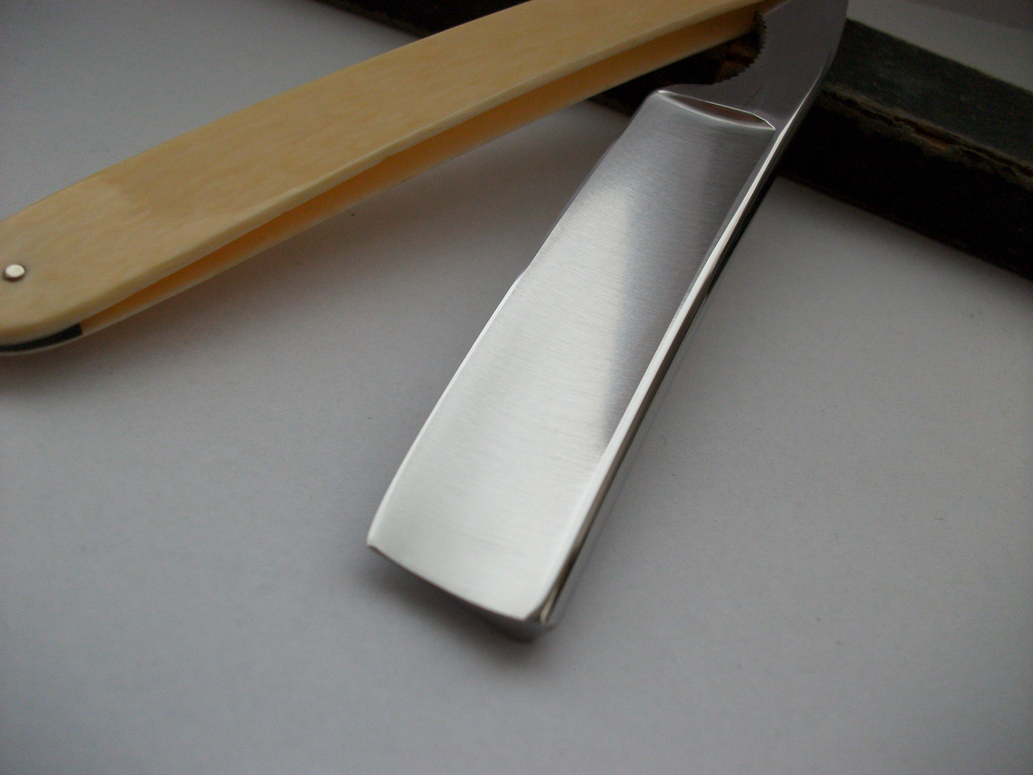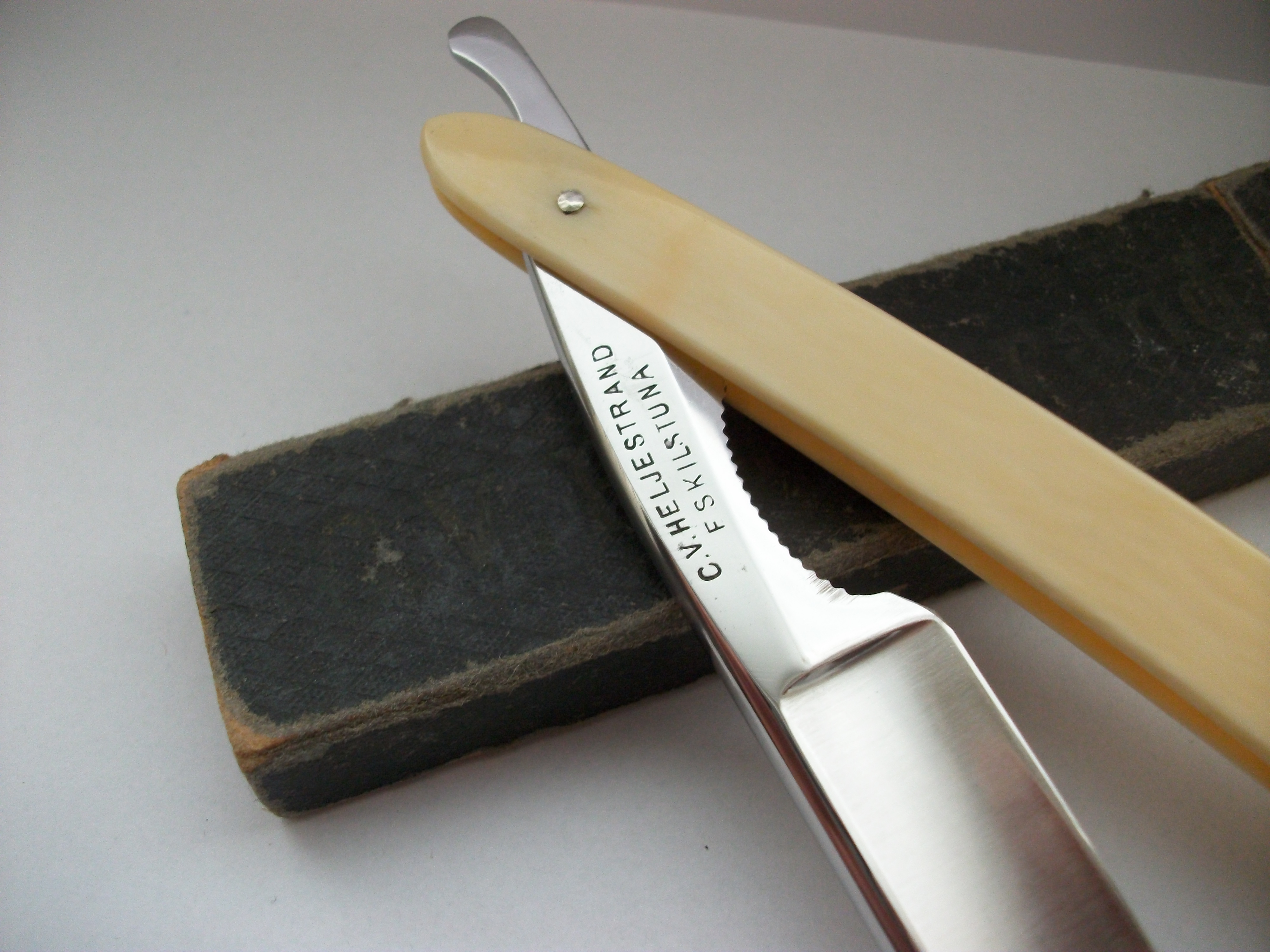 Необычный Хельестранд, думаю ранняя модель, достаточно грубый сатин, нетипичная вогнутость, даже коробочка черная , а не как у большинства которое имеет красную. Углеродистая сталь, ширина полотна 17мм, длина режущей кромки 65мм. Родная ручка из рога была заменена на слоновую кость так же от Хельестранда. Коробочка дырявая с обоих торцов. Бритва заточена и готова к бритью.