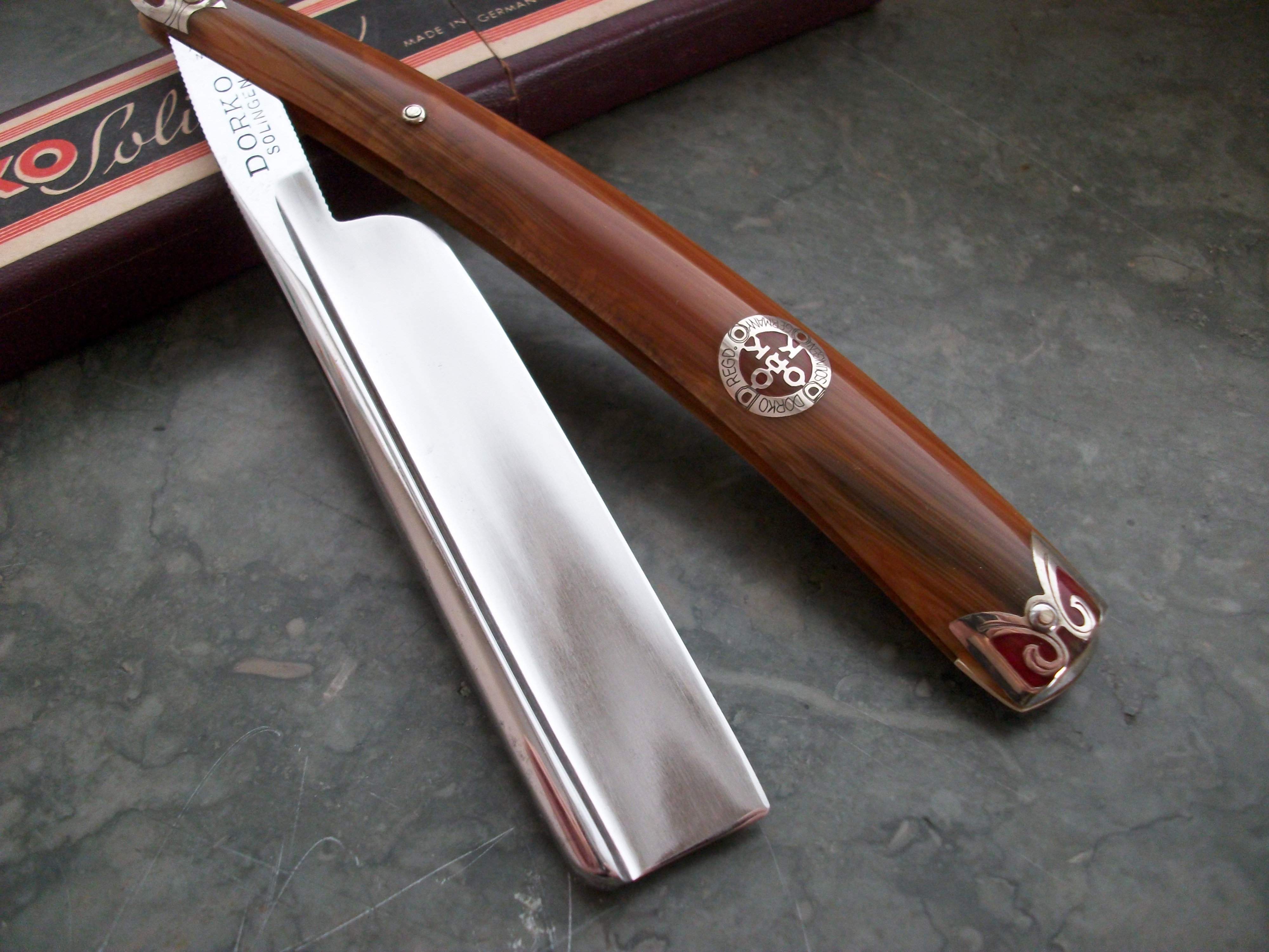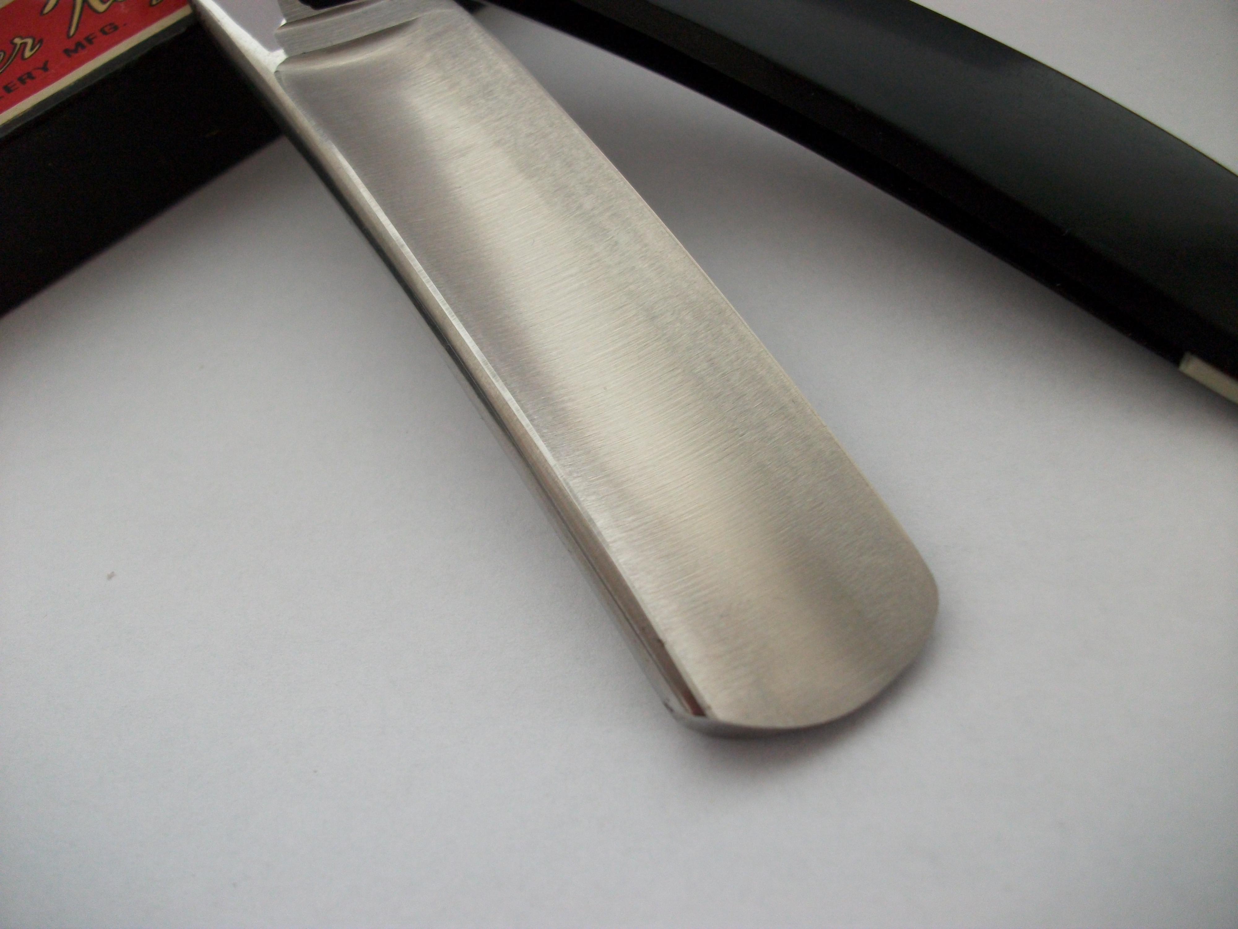 Углеродистая сталь, ширина полотна 15мм, длина режущей кромки примерно 70мм. Полотно в хорошем состоянии - родной сатин и травление. Сталь в работе очень понравилась. Ручка пластик. Заточена и готова к бритью. Продано Spoiler Show