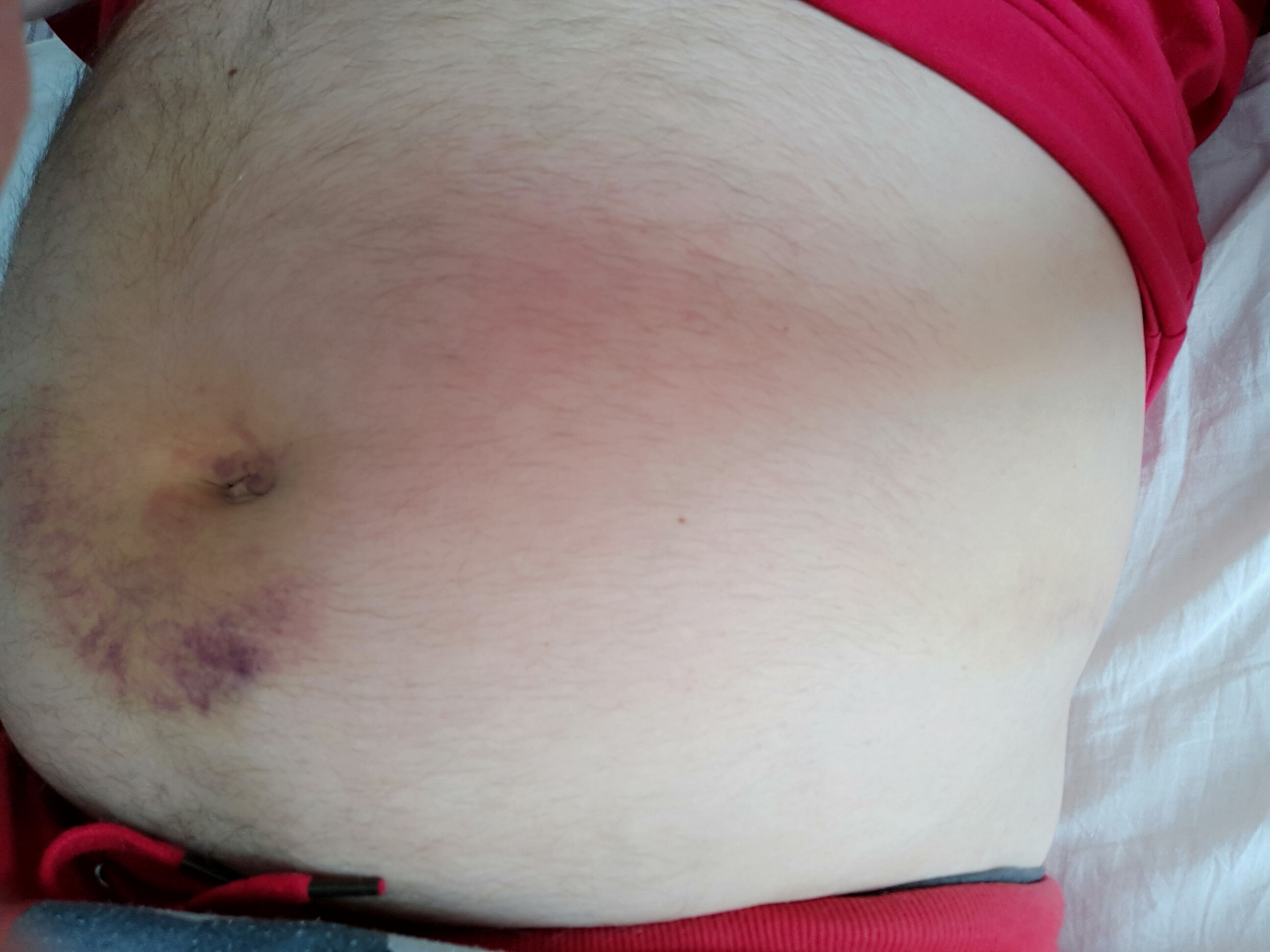 В общем какой-то двойной бронхит вышел, не знаю как кашлял так - думал лёгкие вылезут, с 1 января вообще невмоготу стало, просто рот не закрывался. Ничего не помогало, потом стал пресс болеть, жена говорит - а что это у тебя живот синий? Где-то фото есть даже (нашёл). Я накашлял прессом гематому.