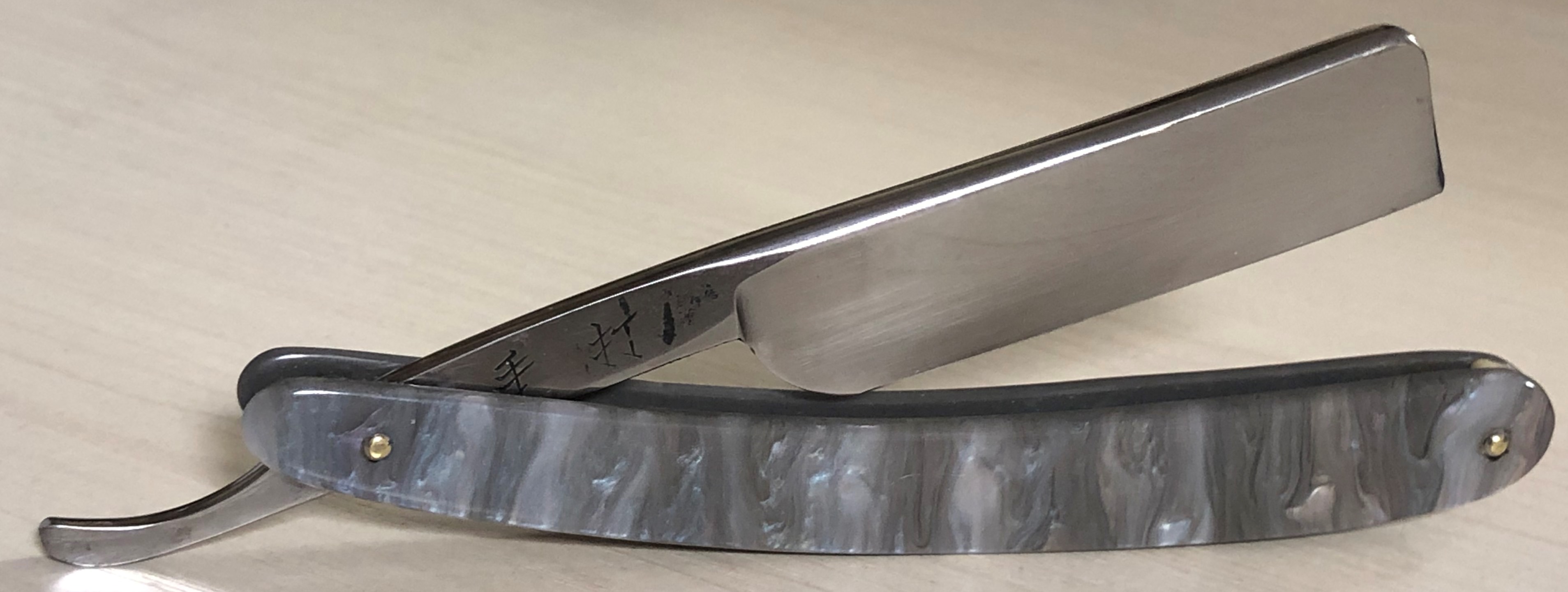 JOSE MONSERRAT POU Ширина полотна-20 мм Толщина обушка-6 мм Полная вогнутость. Углеродистая сталь. Середина 20-го века. Бритва в очень хорошем и совершенно не уточенном состоянии.Разобрал, почистил клинок от патины и снова собрал. Равномерную ,благородную патину специально оставил на эрле, для красоты.Металл бритвы не имеет видимых и критичных дефектов.Идеальная геометрия полотна. Бритва имеет прекрасную и "звонкую" сталь, способную выдавать чистое и мягкое бритье. Очень хороша в качестве стартовой для новичка, но и не только.Бритва относительно недорогая, так что не пропустите. Заточена и готова к брить. Цена-6500 р с доставкой[/b][/QUOTE] ПРОДАН Внимание! Важная информация! Spoiler Show